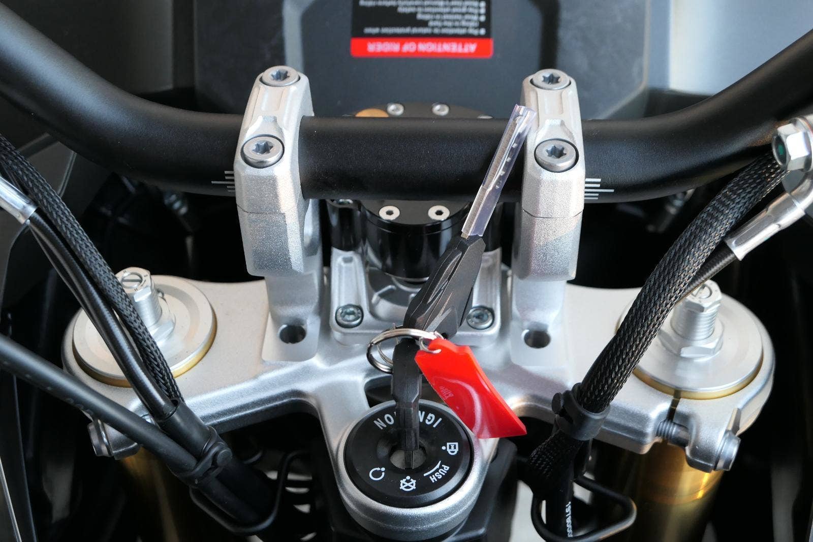 Offroadový kola jak zákon káže. Vpředu najdeš jednadvacítku, vzadu osmnáctku – prostě offroad klasika. Kola jsou samozřejmě drátový a bezdušový. Na ráfkách dostaneš gumy Pirelli Scorpion Rally STR, který si hravě poraděj jak s asfaltem, tak s terénem.