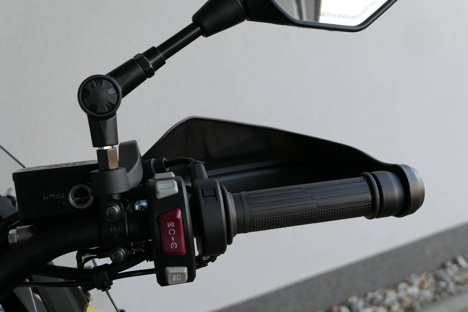 Displej na stojáka, abys na něj viděl i ze stupaček. Na barevnej TFT displej s vysokým jasem a kontrastem krásně uvidíš i za toho nejvostřejšího slunka. A že je postavenej na vejšku? To není náhoda – když vyskočíš do stupaček, máš pořád perfektní přehled. Displej můžeš ovládat přes chytrý udělátka na řídítkách a přes blůtůčko si ho spáruješ s mobilem.