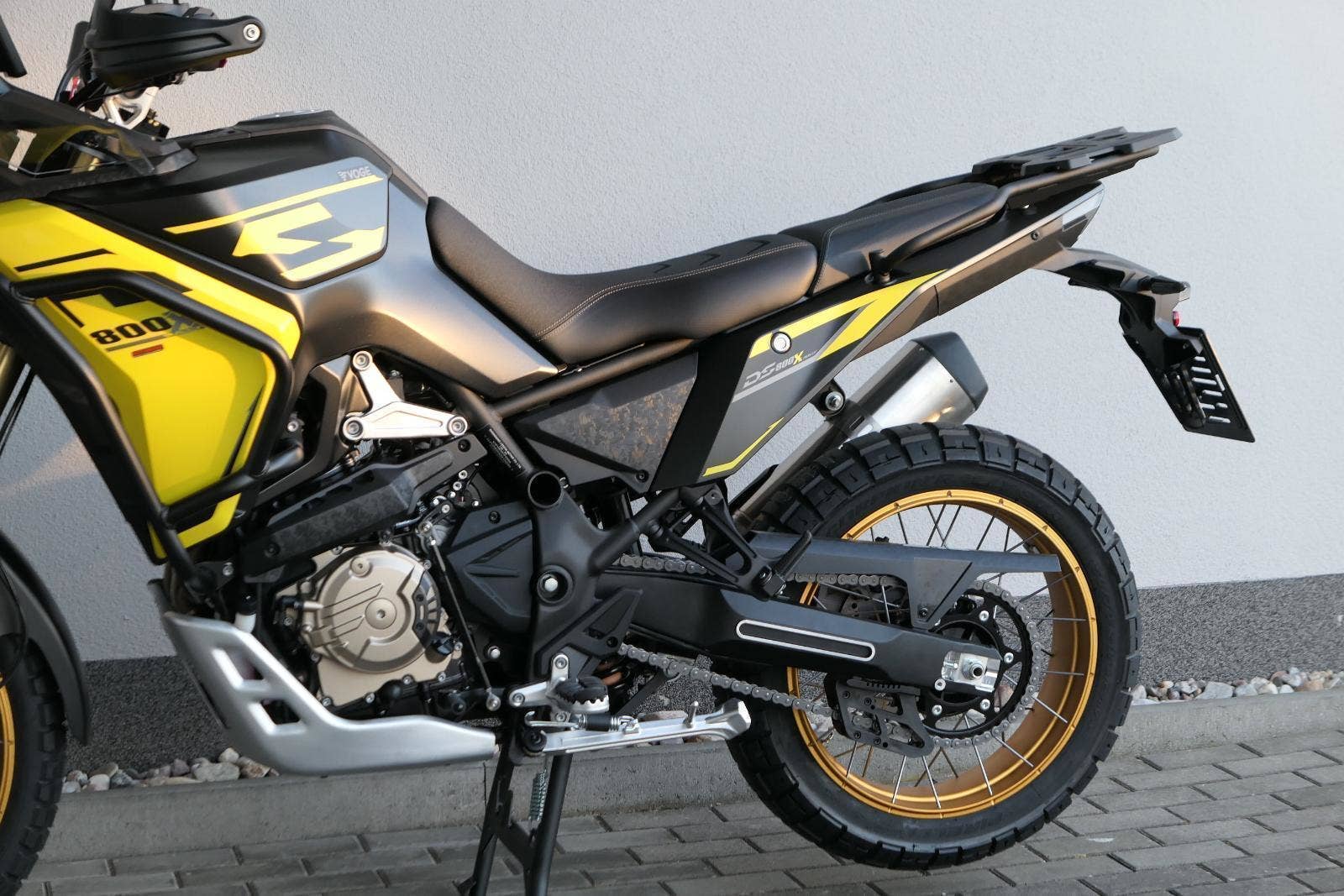 Fungl novej dvouválec 800 ccm. Z tohodle dvouválcovýho vodníka vyždímáš pořádnou sílu. 94 koní tě požene až 190 kiláků v hodině. Vrnět blahem budeš i nad krouťákem – maximum 81 Nm má už v 6 500 otáček. Tenhle fungl novej motor z tebe udělá skutečnýho siláka, ať už budeš frčet po dálnici nebo dovádět v terénu.