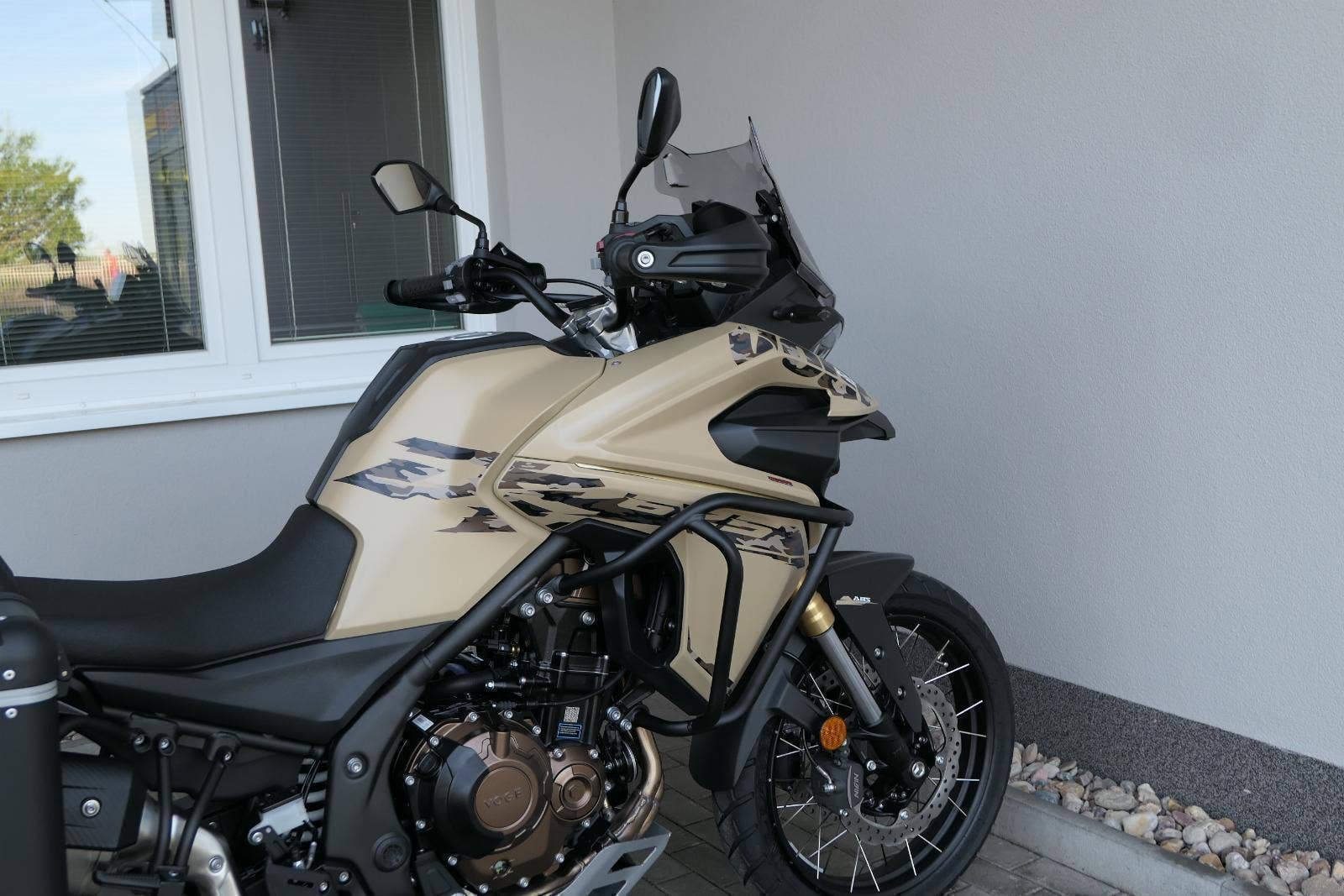 Těšit se můžeš taky na plexi, který si z místa řidiče bez nářadí nastavíš do dvou poloh. Oceníš i hliníkovej kryt motoru, LED světla včetně přídavnejch bodovek, boční i středovej stojan a hafo další výbavičky. Jo, a nově mám taky podsvícený ovladače na řídítkách, takže už žádný tápání ve tmě.