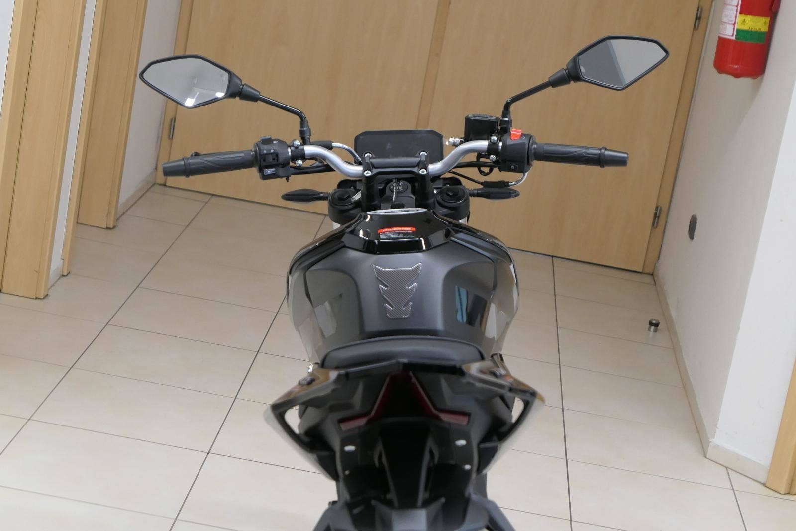 Výbava patří ke špičce ve třídě. Dominantou je 7" barevný LCD displej, který je perfektně čitelný za všech světelných podmínek. Kompletní LED osvětlení doplňují originální designové LED pásky po stranách nádrže, které motocyklu dodávají nezaměnitelný vzhled. Pohodlný posed, široká řídítka a výška sedla 795 mm zajišťují komfort i při delších jízdách.
