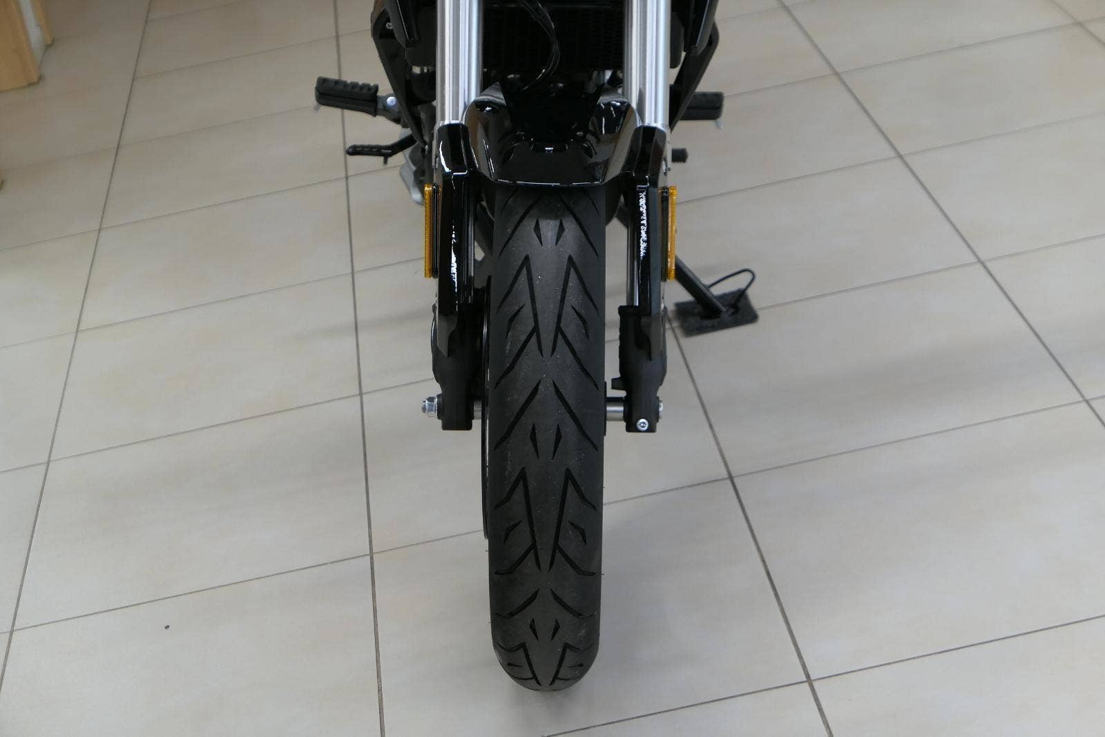 Podvozek je naladěn sportovně, ale přívětivě. Přední upside-down vidlice Ø 35 mm a zadní centrální tlumič zajišťují jistotu v zatáčkách i komfort při běžné jízdě. O bezpečné brzdění se starají kotoučové brzdy vpředu i vzadu doplněné o ABS, které je v základní výbavě. Díky provozní hmotnosti 136 kg je motocykl velmi snadno ovladatelný i pro méně zkušené jezdce.