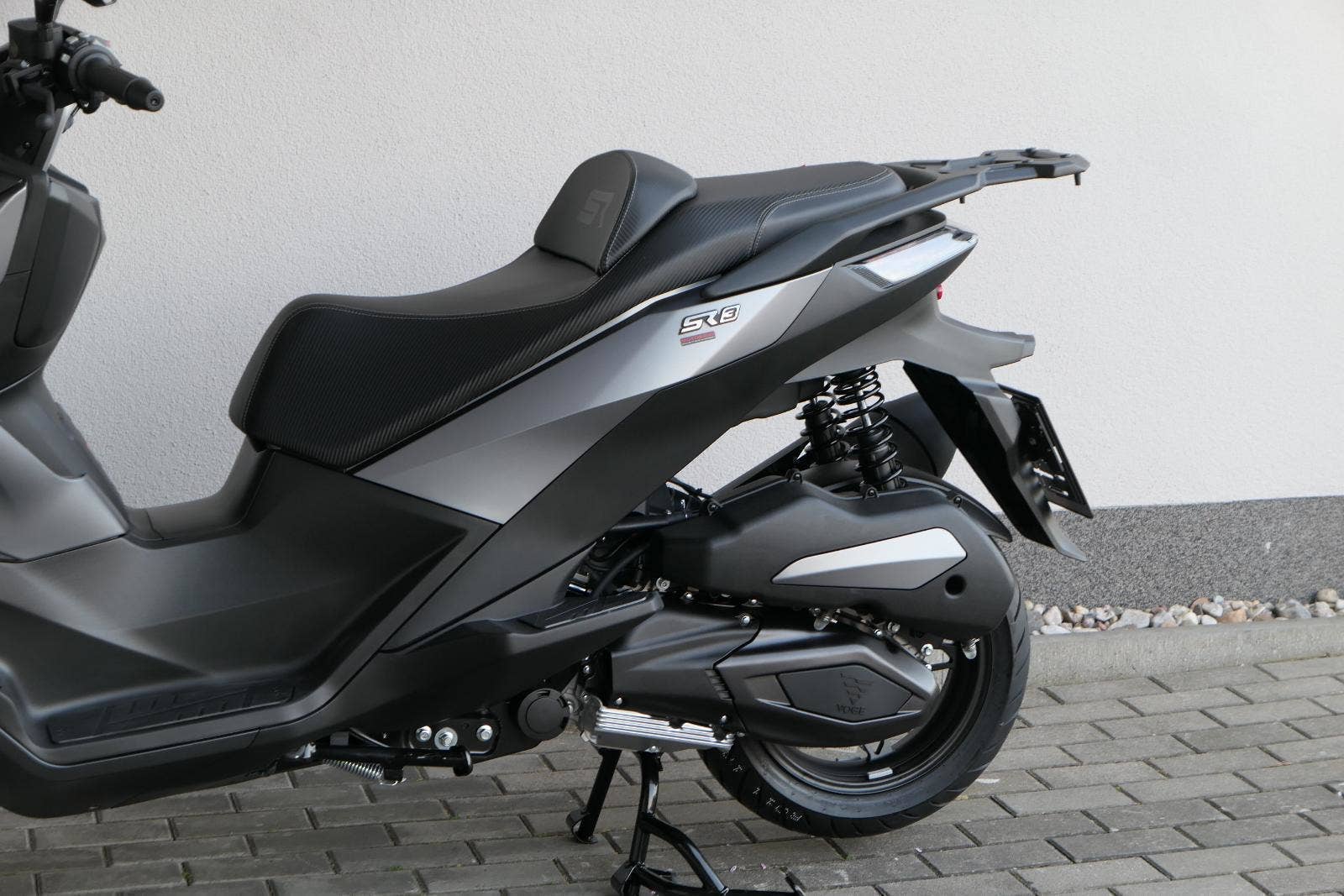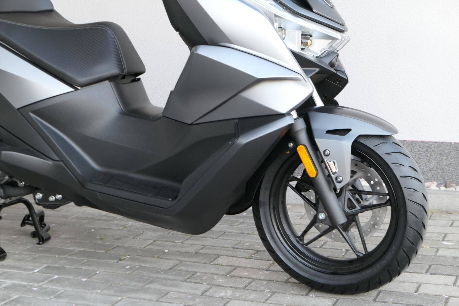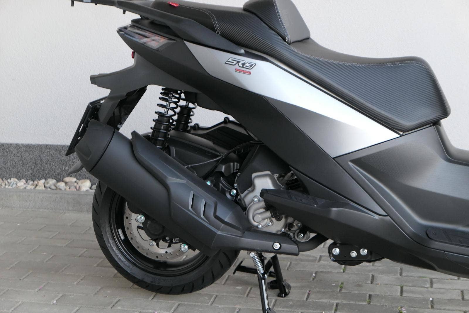 K tomu integrovaná palubní kamera s detektorem nárazu, kterej automaticky uloží záznam při nehodě. Elektrika je fajn, ale při brzdění spolíhám na starý dobrý železo, tedy dvoupístkový třmeny a kotouče. Ten vpředu má průměr 260 mm, zadní 240 mm. Na skútr slušný, co říkáš?