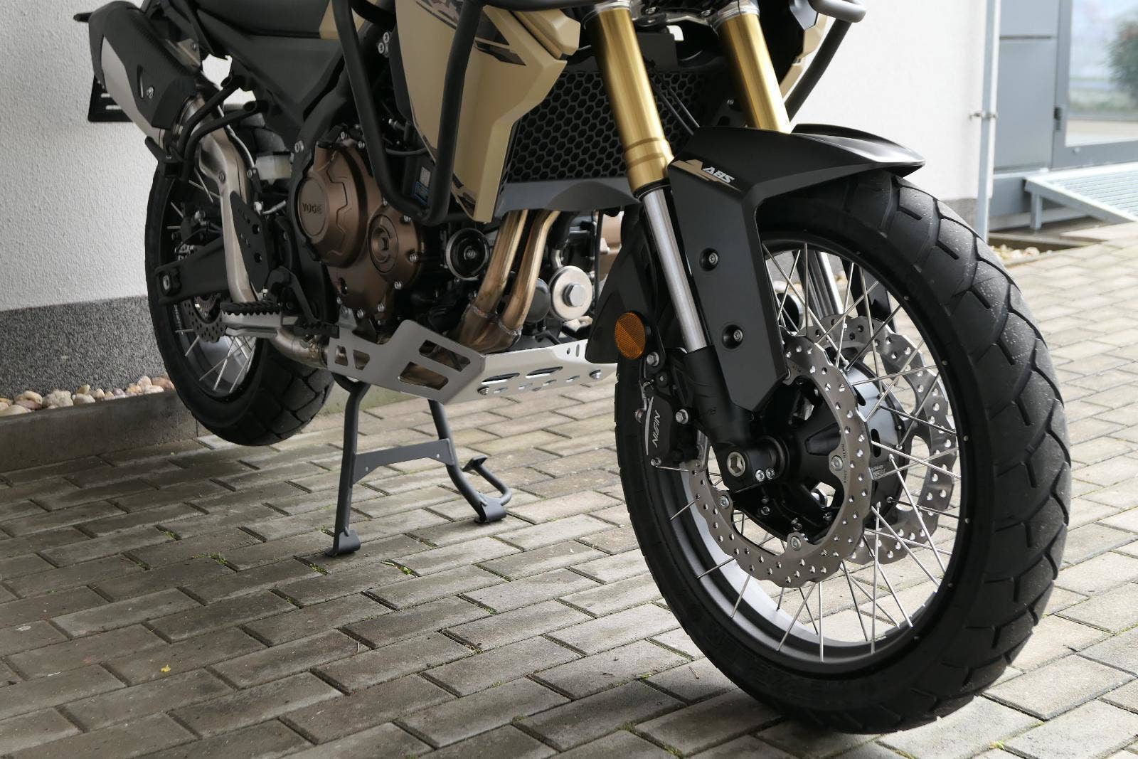 Na fešnejch drátěnejch kolech mám obutý bezdušový gumy Metzeler Tourance. Naprostej spoleh je na topový brzdy od japonskýho Nissinu. Pomocí dvou jízdních režimů mi snadno poručíš, jestli dáme piánko, nebo přitvrdíme v režimu sport.