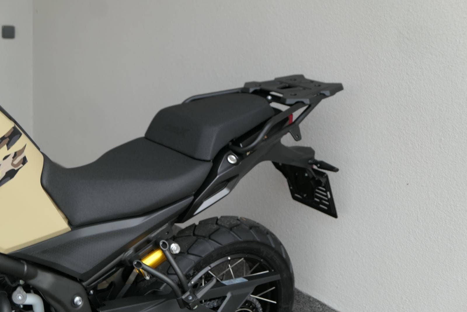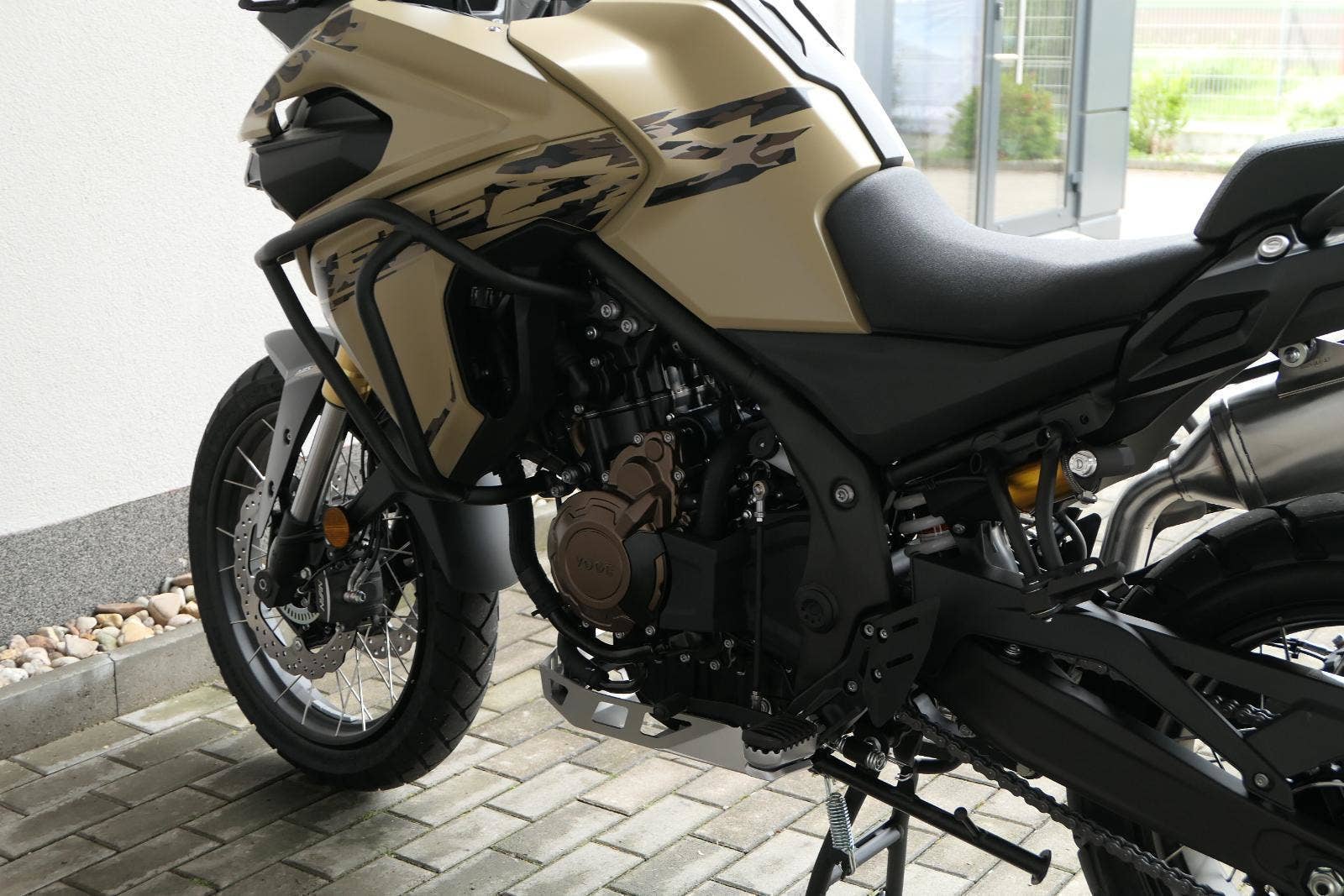 Těšit se můžeš taky na plexi, který si z místa řidiče bez nářadí nastavíš do dvou poloh. Oceníš i hliníkovej kryt motoru, LED světla včetně přídavnejch bodovek, boční i středovej stojan a hafo další výbavičky. Jo, a nově mám taky podsvícený ovladače na řídítkách, takže už žádný tápání ve tmě.