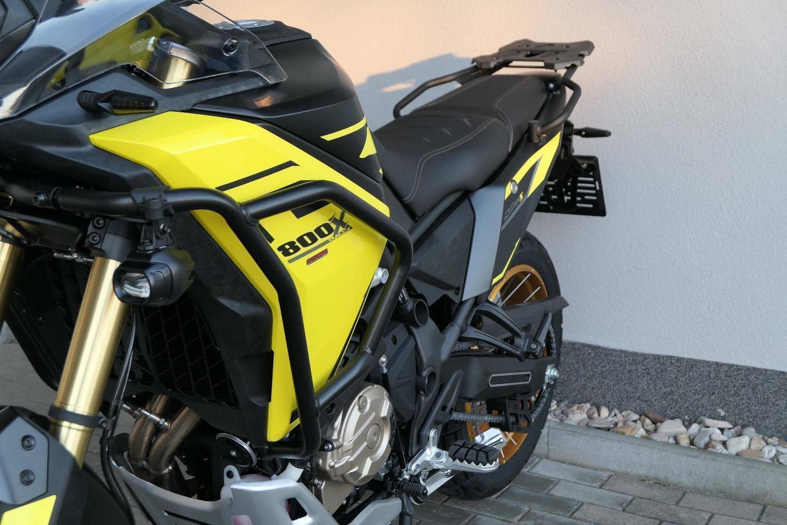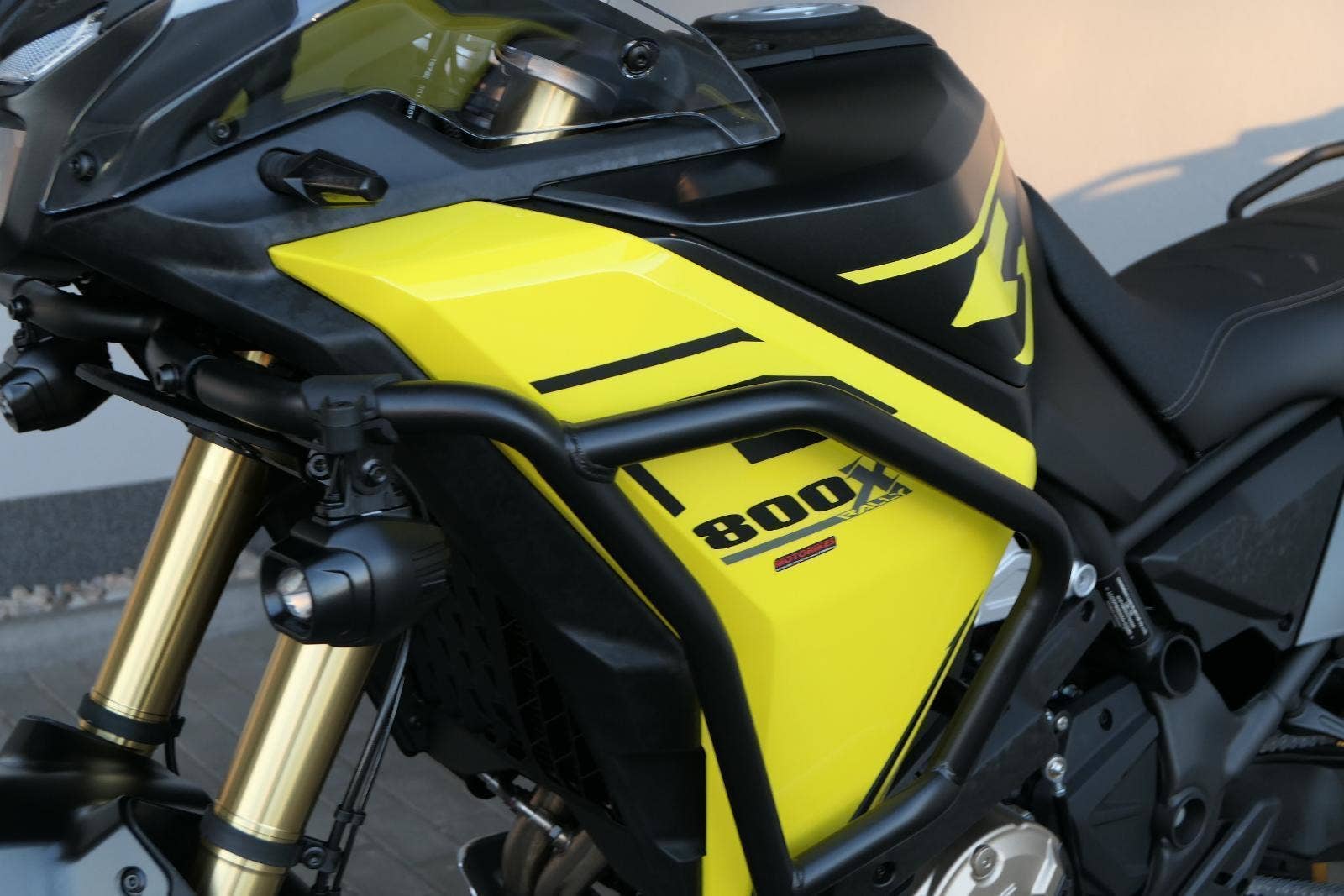 Fungl novej dvouválec 800 ccm. Z tohodle dvouválcovýho vodníka vyždímáš pořádnou sílu. 94 koní tě požene až 190 kiláků v hodině. Vrnět blahem budeš i nad krouťákem – maximum 81 Nm má už v 6 500 otáček. Tenhle fungl novej motor z tebe udělá skutečnýho siláka, ať už budeš frčet po dálnici nebo dovádět v terénu.