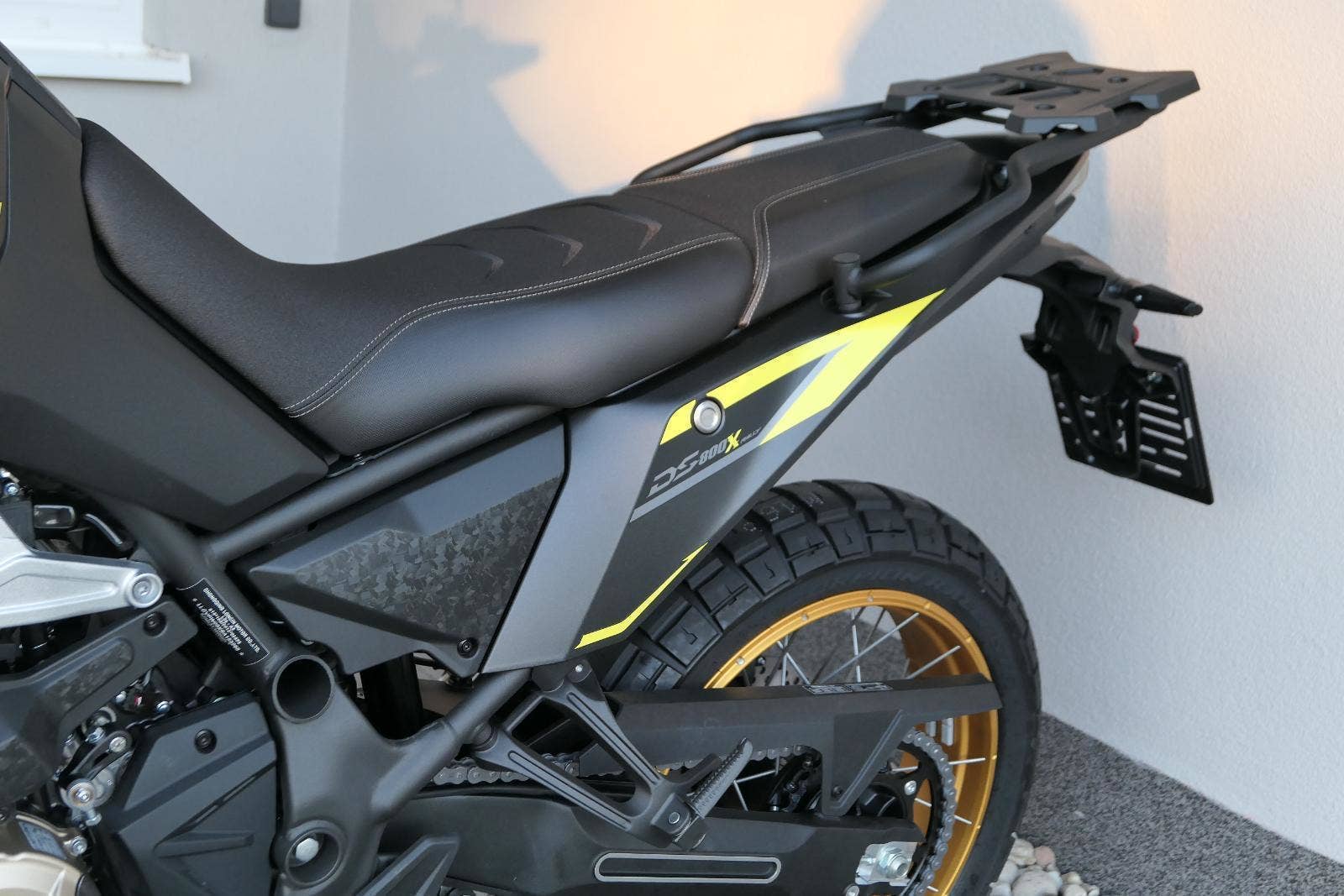 Můj štíhlej pas ti dovolí užít si jak jízdu vestoje, tak vsedě. Vysoký plexi mám fikaně posunutý dopředu, takže ti nebude mlátit do brady třeba při skocích. No a moje stupačky jsou nejen prostorný, ale samože taky zubatý, takže tě podržej v každý situaci.