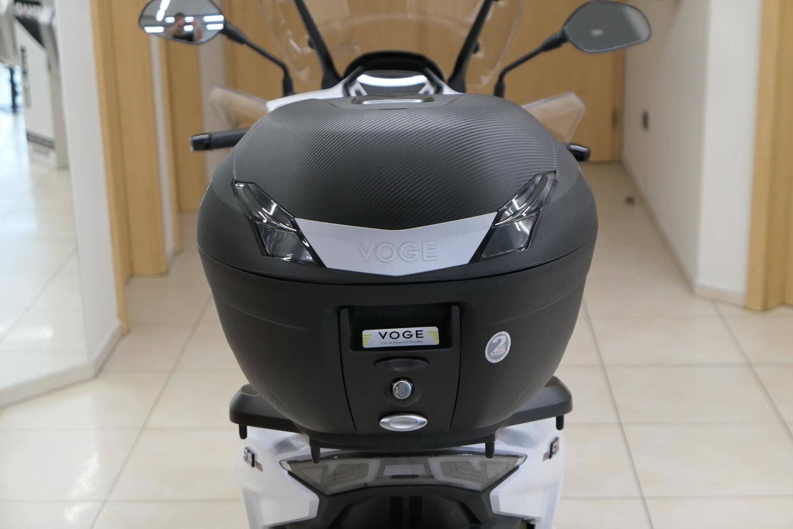 Pod sedlo hodíš běžnej nákup, případně jetku nebo menší integrálku. A kdybys vyrazil na větší nákup, už v základu dostaneš zadní hliníkovej nosič s 34litrovým kufrem. Drobnosti si schováš do uzavíratelný přihrádky s USB, kterou mám v předním štítu.
