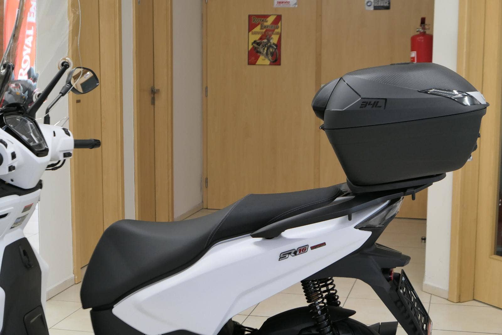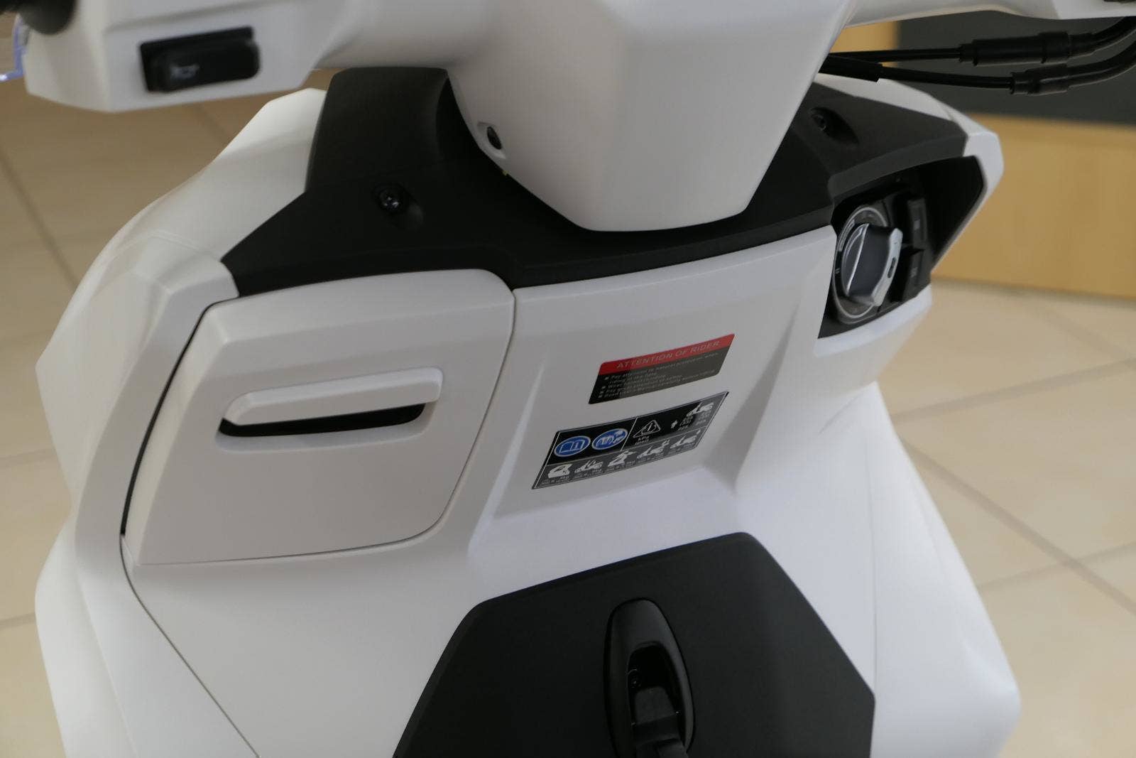 Pod sedlo se toho vejde… Třeba velká jet helma nebo středně velká integrálka. Takže nemusíš přemýšlet, kam si odložíš helmu, když tě čeká jednání s nějakým velkým zvířetem. Hodíš ji pod sedlo, urovnáš kravatu a jdeš.