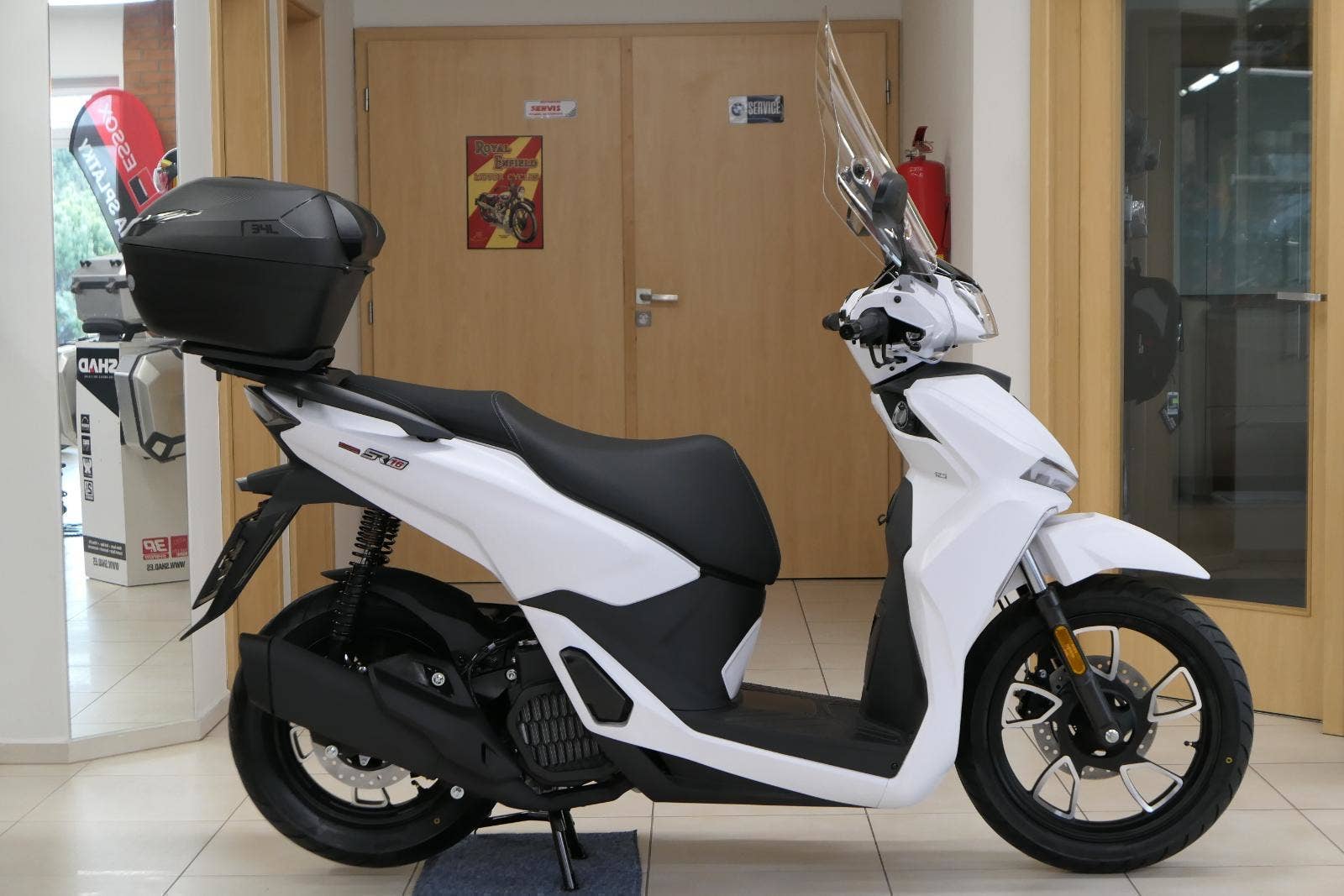 Boční i centrální stojan dostaneš už v základu, žádný příplatky. Bočák šetří čas při krátkých zastávkách a zrychluje parkování. Manipulace se skútrem tak bude hračka i pro drobnější skútristku.