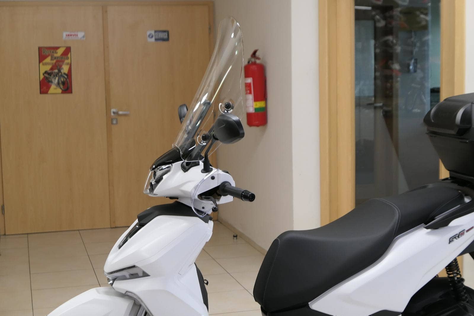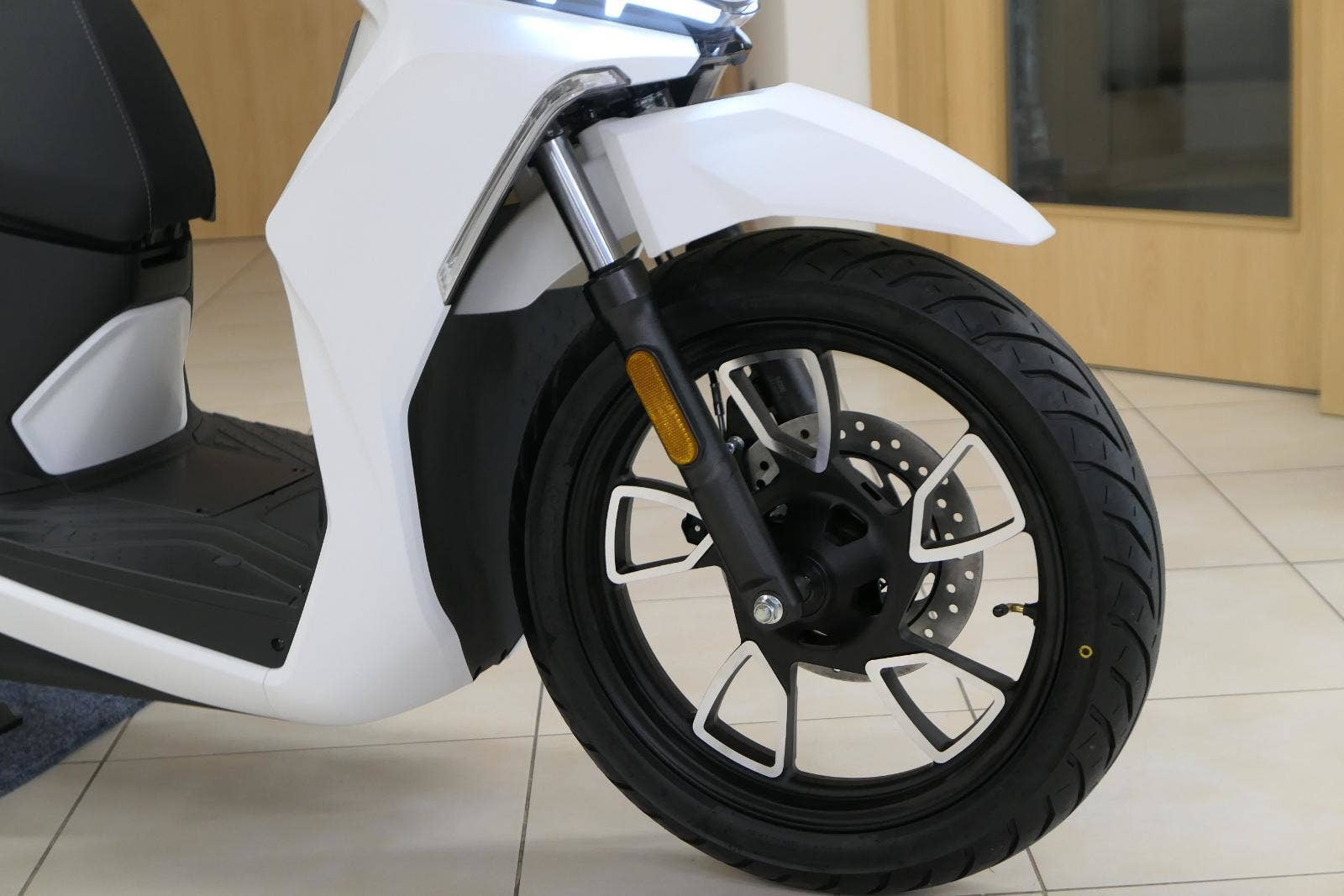 Šestnáctka vpředu a čtrnáctka vzadu se postarají o to, abys zapomněl, že silnice ve městě nejsou vždycky hebký jako hedvábí. A aby to nejen nedrncalo, ale ani nefučelo, máš už v základu plexi štít a kryty na ruce. Správnýho džentlmena zkrátka počasí nezastaví.
