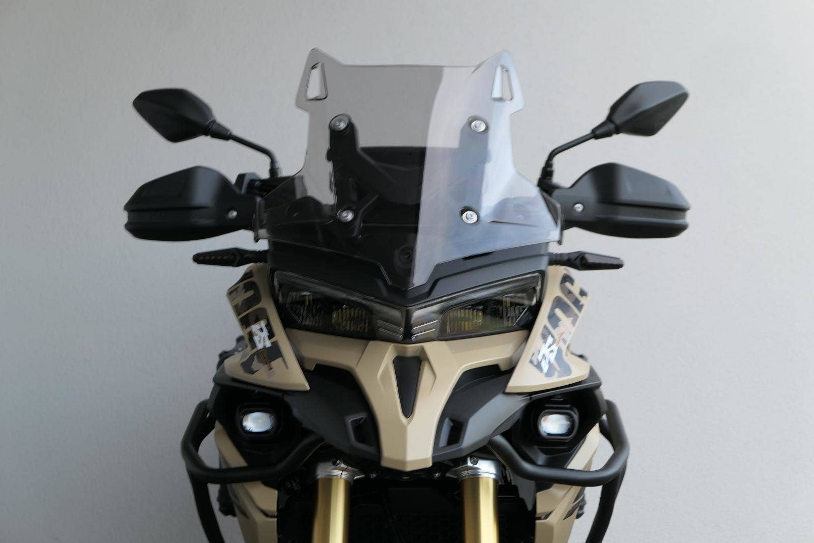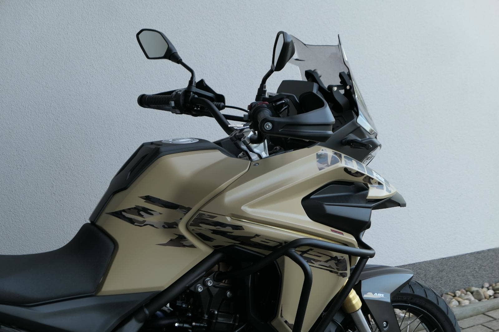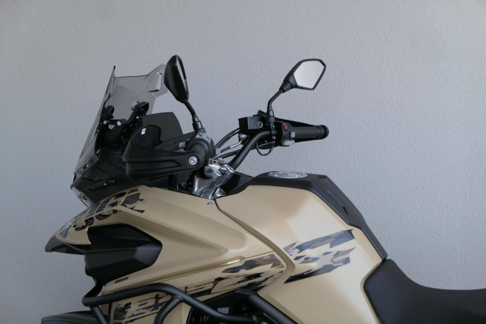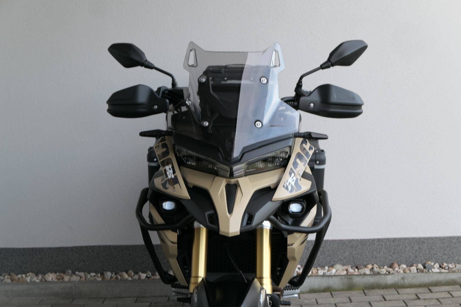 Těšit se můžeš taky na plexi, který si z místa řidiče bez nářadí nastavíš do dvou poloh. Oceníš i hliníkovej kryt motoru, LED světla včetně přídavnejch bodovek, boční i středovej stojan a hafo další výbavičky. Jo, a nově mám taky podsvícený ovladače na řídítkách, takže už žádný tápání ve tmě.