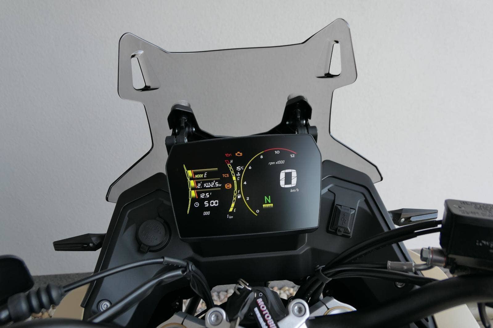 Kromě větší síly a lepšího podvozku mám taky vylepšenej 7palcovej displej. Má vyšší jas, takže na něm všecko krásně uvidíš i za vostrýho slunka. Mobil si snadno spáruješ pomocí blůtůčka. Jen co to uděláš, dostaneš na přístrojovku šipkovou navigaci, díky který nemineš ani tu nejzašitější odbočku. No a 12V zásuvka nebo USB konektor? Jasněže voboje!