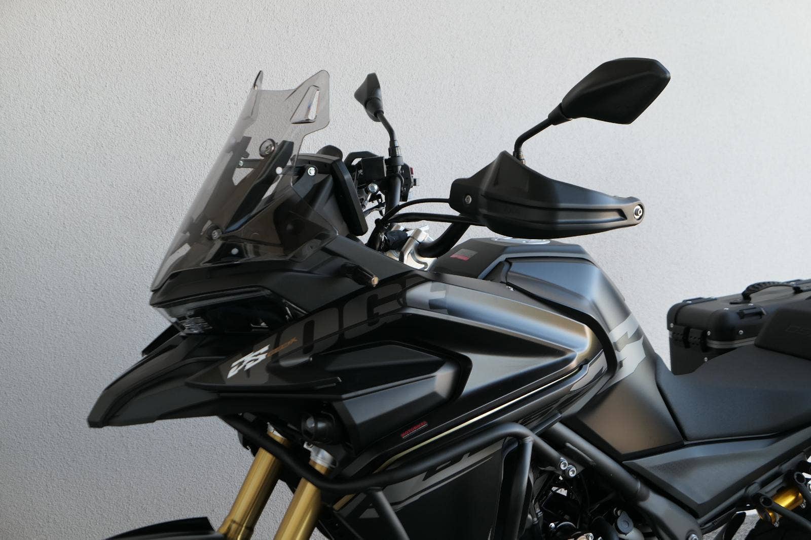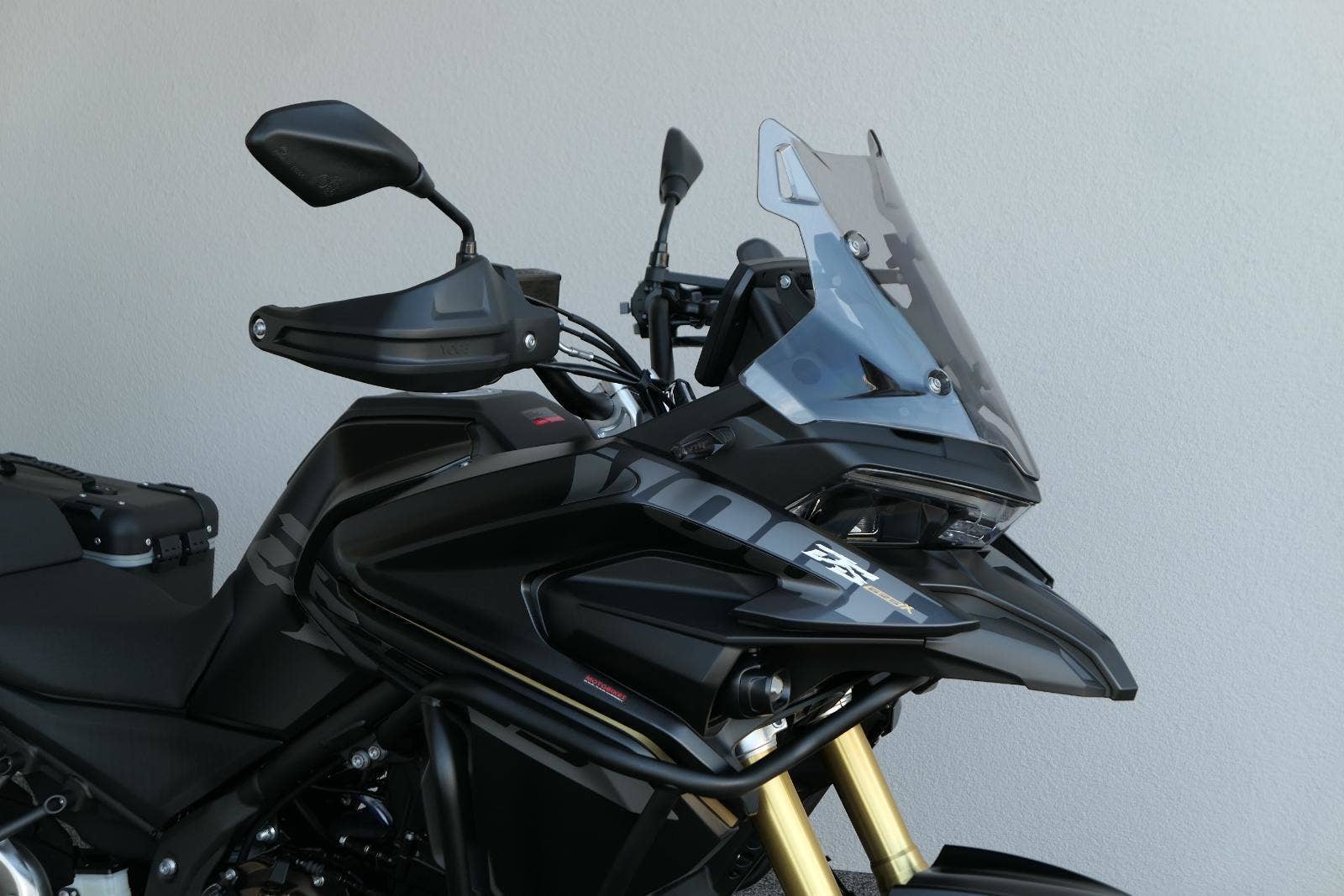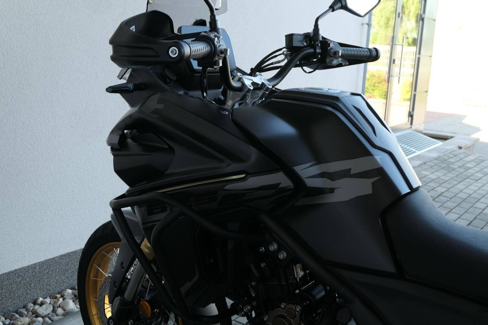 Těšit se můžeš taky na plexi, který si z místa řidiče bez nářadí nastavíš do dvou poloh. Oceníš i hliníkovej kryt motoru, LED světla včetně přídavnejch bodovek, boční i středovej stojan a hafo další výbavičky. Jo, a nově mám taky podsvícený ovladače na řídítkách, takže už žádný tápání ve tmě.