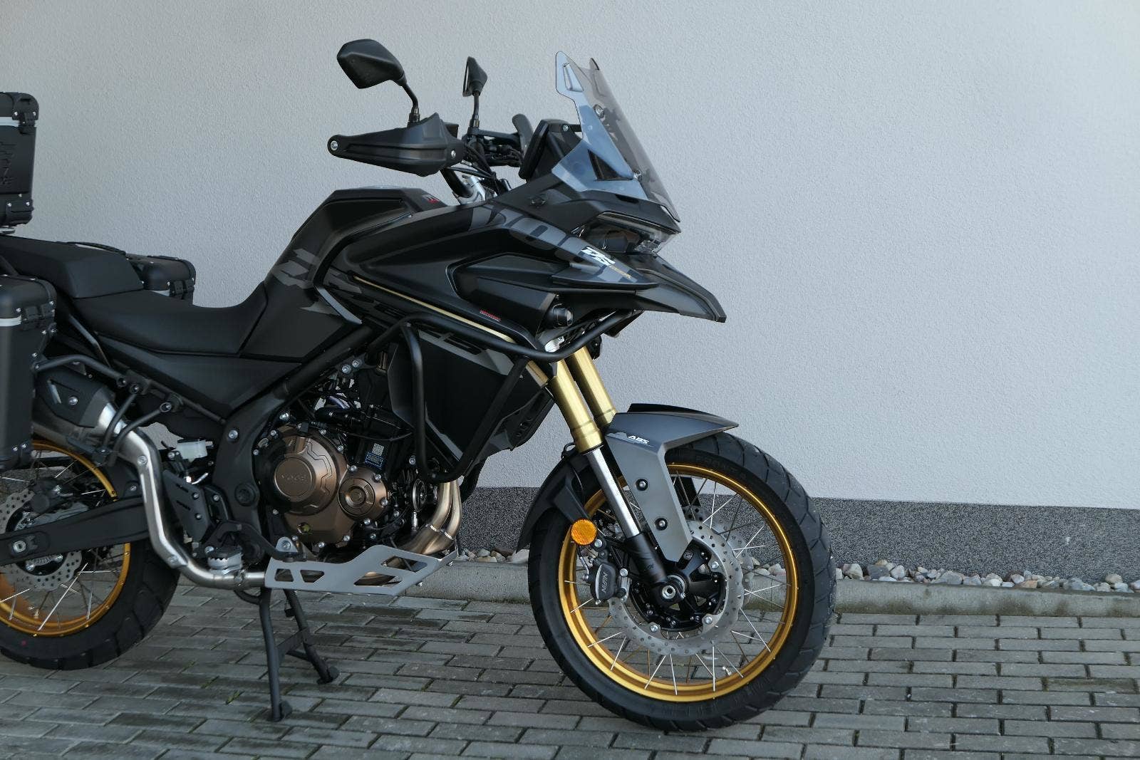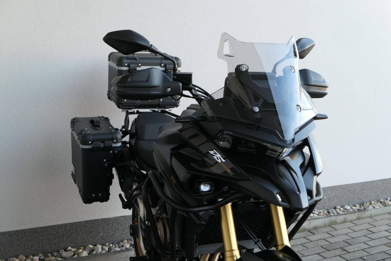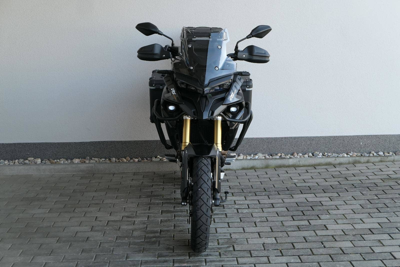 Těšit se můžeš taky na plexi, který si z místa řidiče bez nářadí nastavíš do dvou poloh. Oceníš i hliníkovej kryt motoru, LED světla včetně přídavnejch bodovek, boční i středovej stojan a hafo další výbavičky. Jo, a nově mám taky podsvícený ovladače na řídítkách, takže už žádný tápání ve tmě.