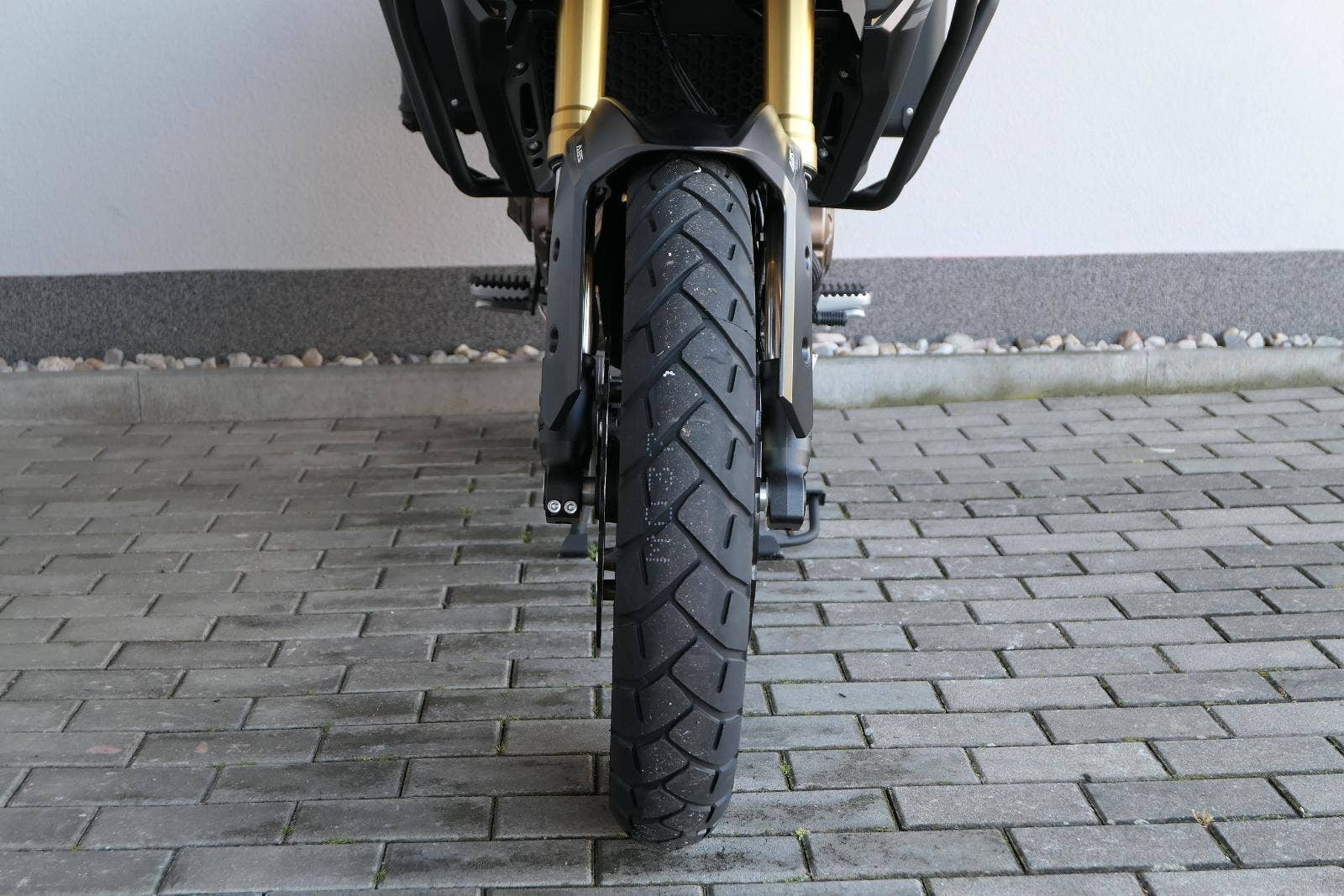 Na fešnejch drátěnejch kolech mám obutý bezdušový gumy Metzeler Tourance. Naprostej spoleh je na topový brzdy od japonskýho Nissinu. Pomocí dvou jízdních režimů mi snadno poručíš, jestli dáme piánko, nebo přitvrdíme v režimu sport.