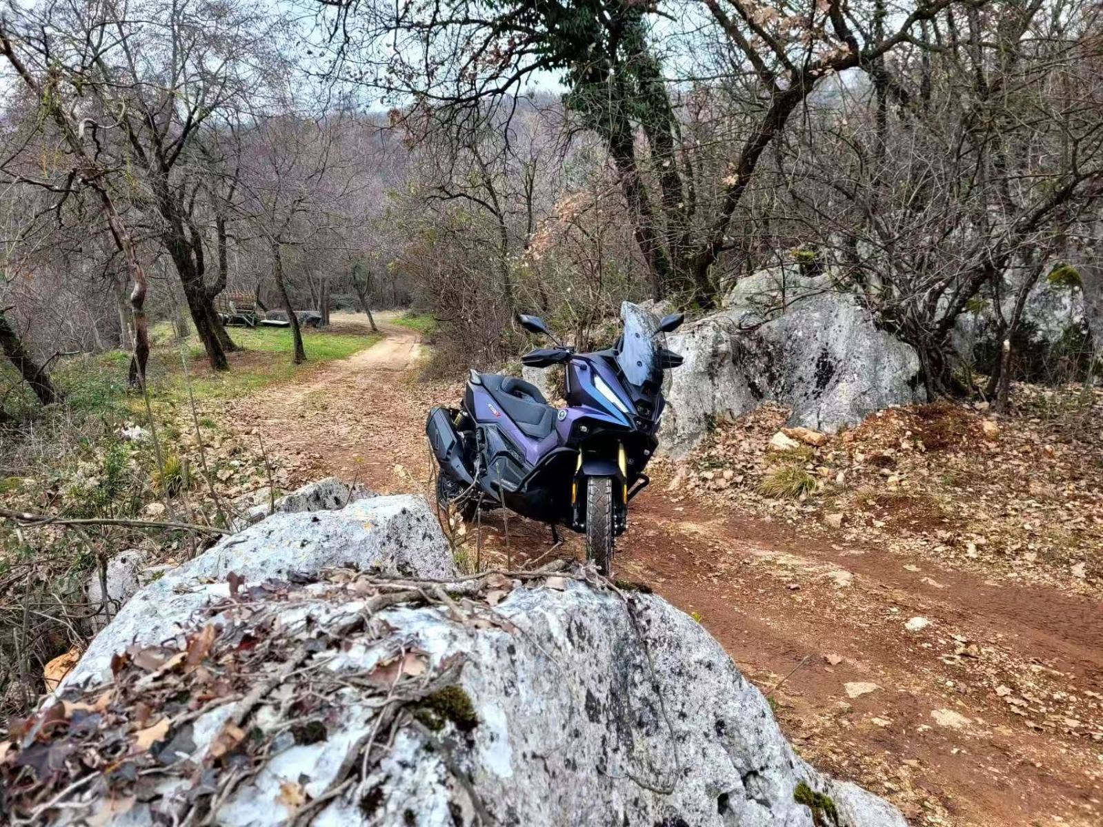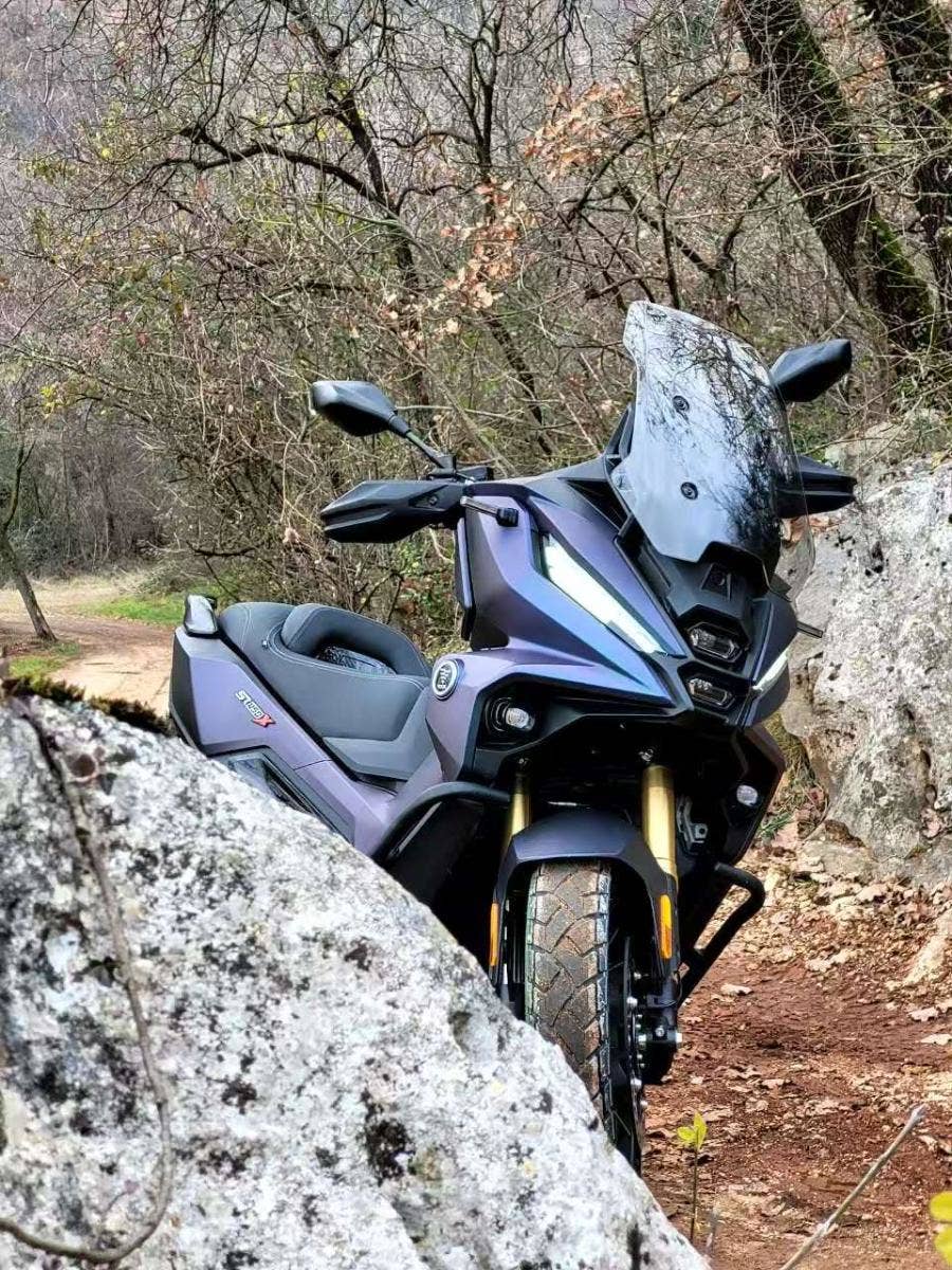 Bluetooh párování z mobilním telefonem, HD kamera přední, zadní, kontrola trakce TCS, ABS (lze vypnout na zadním kole), system varování nouzové brzdění, bezdušové vypletané kola, TPMS, kryty rukou, padací rámy, zadní nosič.