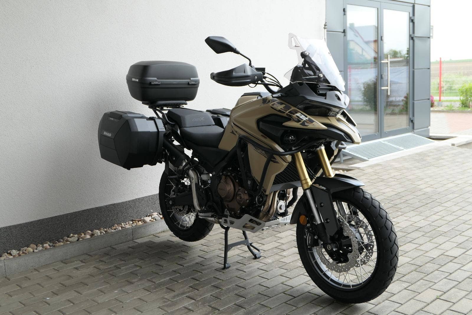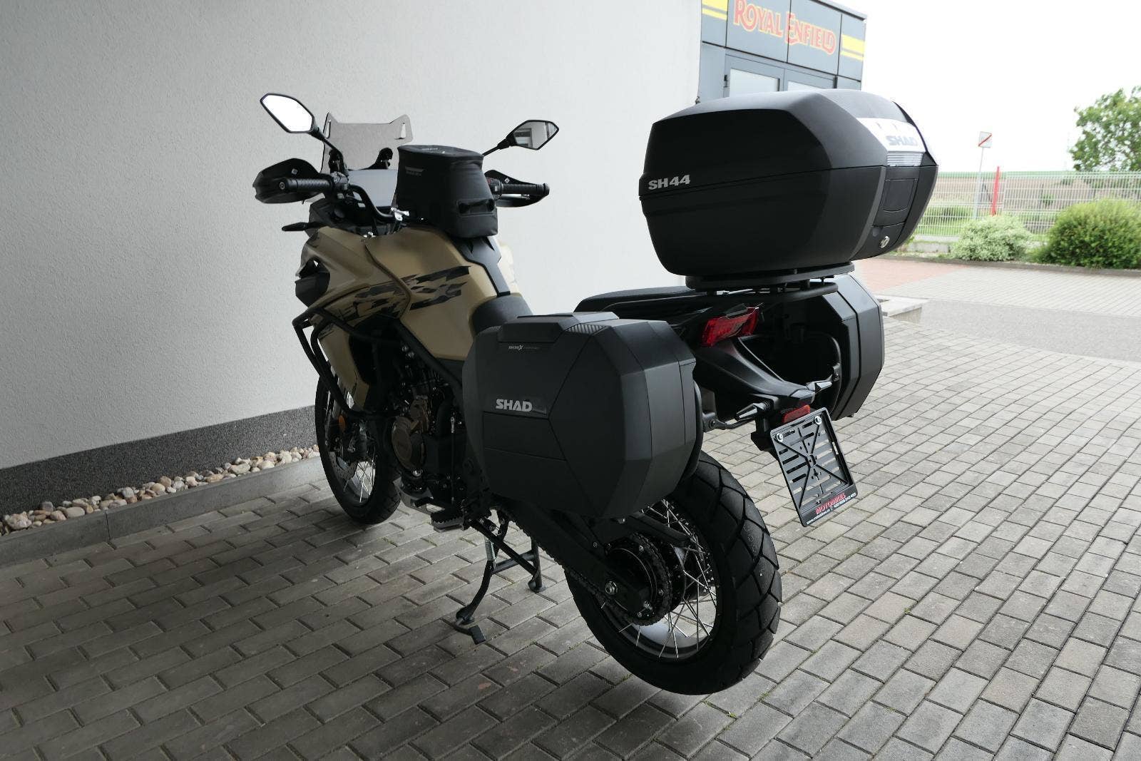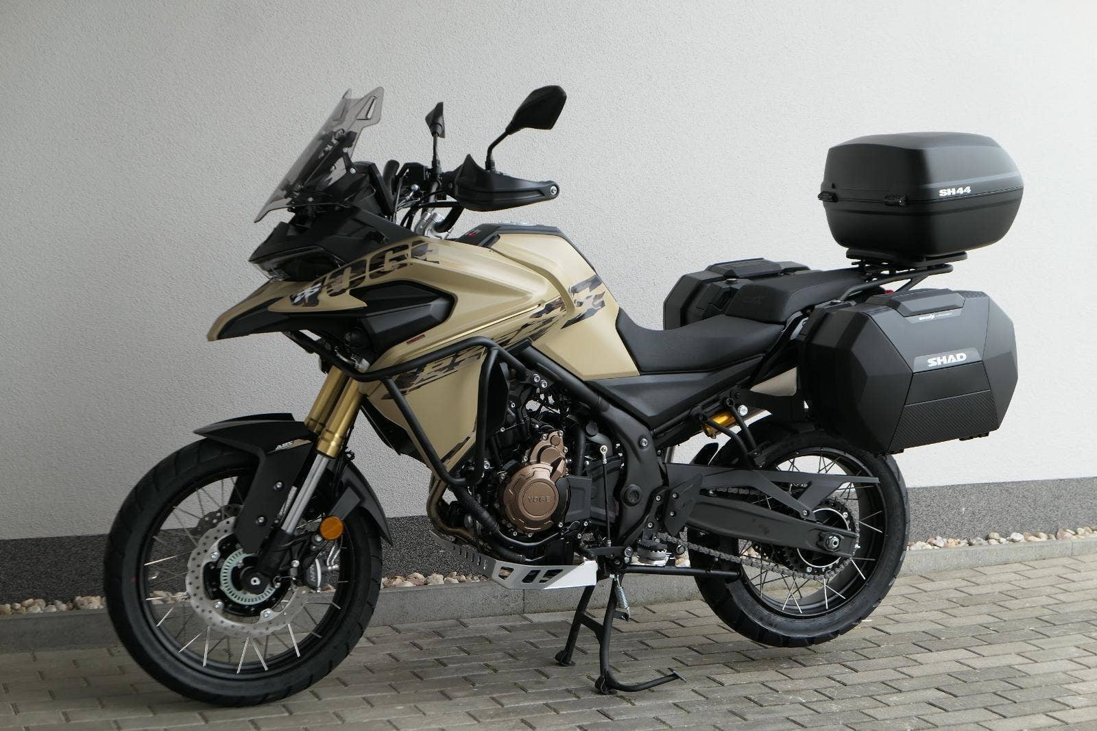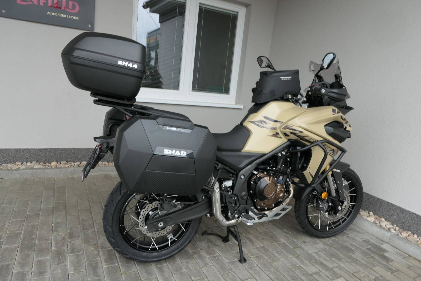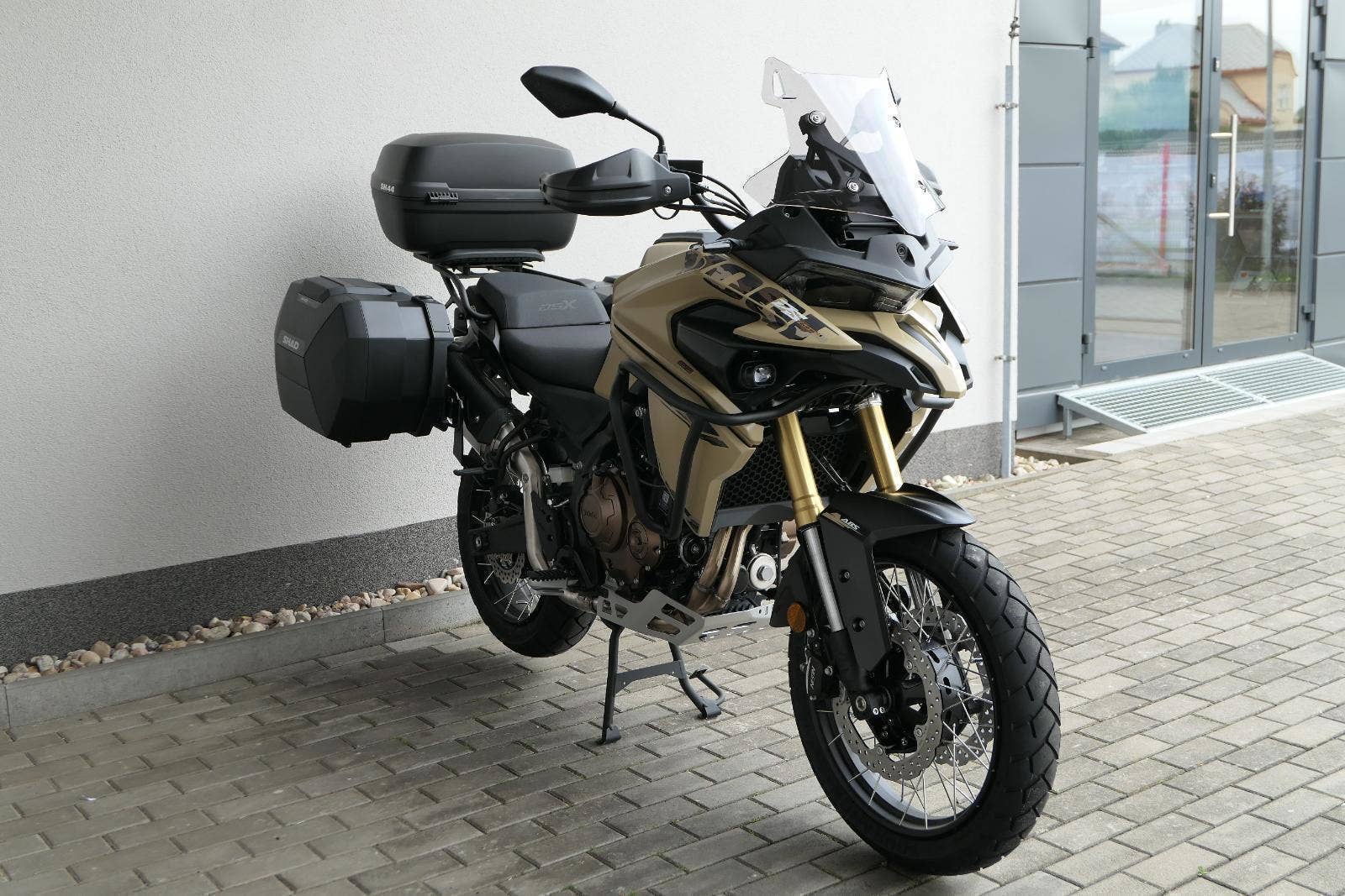 Těšit se můžeš taky na plexi, který si z místa řidiče bez nářadí nastavíš do dvou poloh. Oceníš i hliníkovej kryt motoru, LED světla včetně přídavnejch bodovek, boční i středovej stojan a hafo další výbavičky. Jo, a nově mám taky podsvícený ovladače na řídítkách, takže už žádný tápání ve tmě.