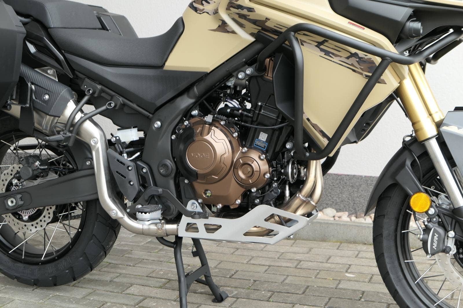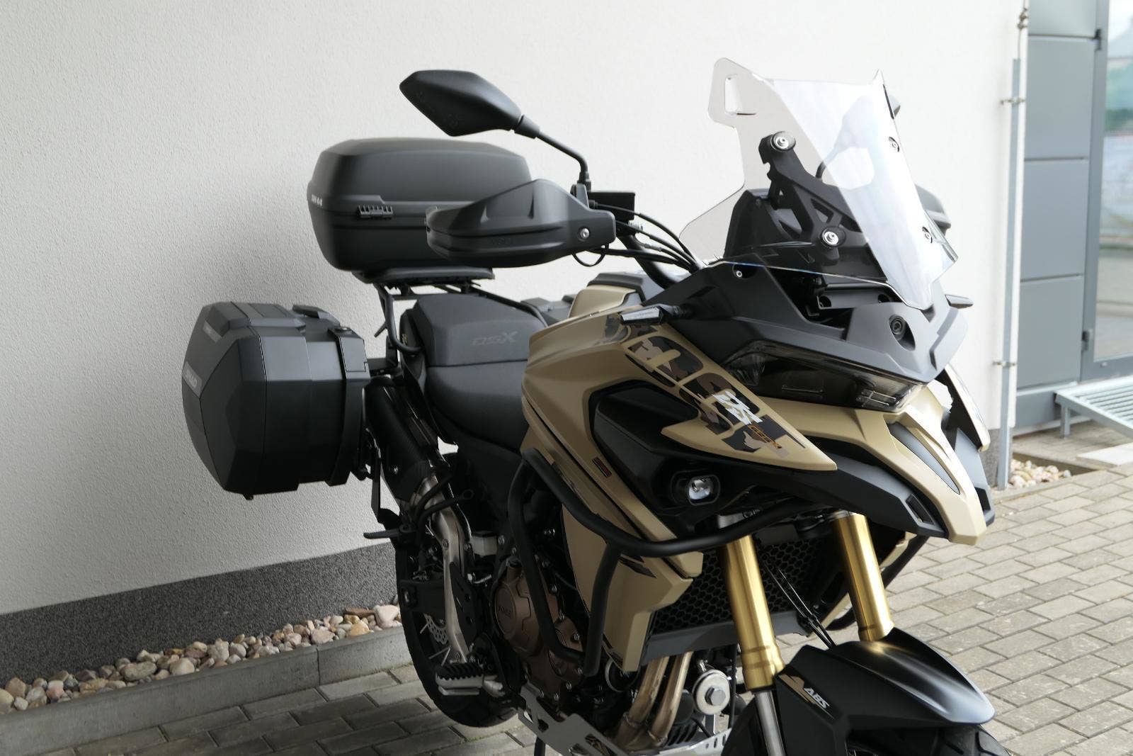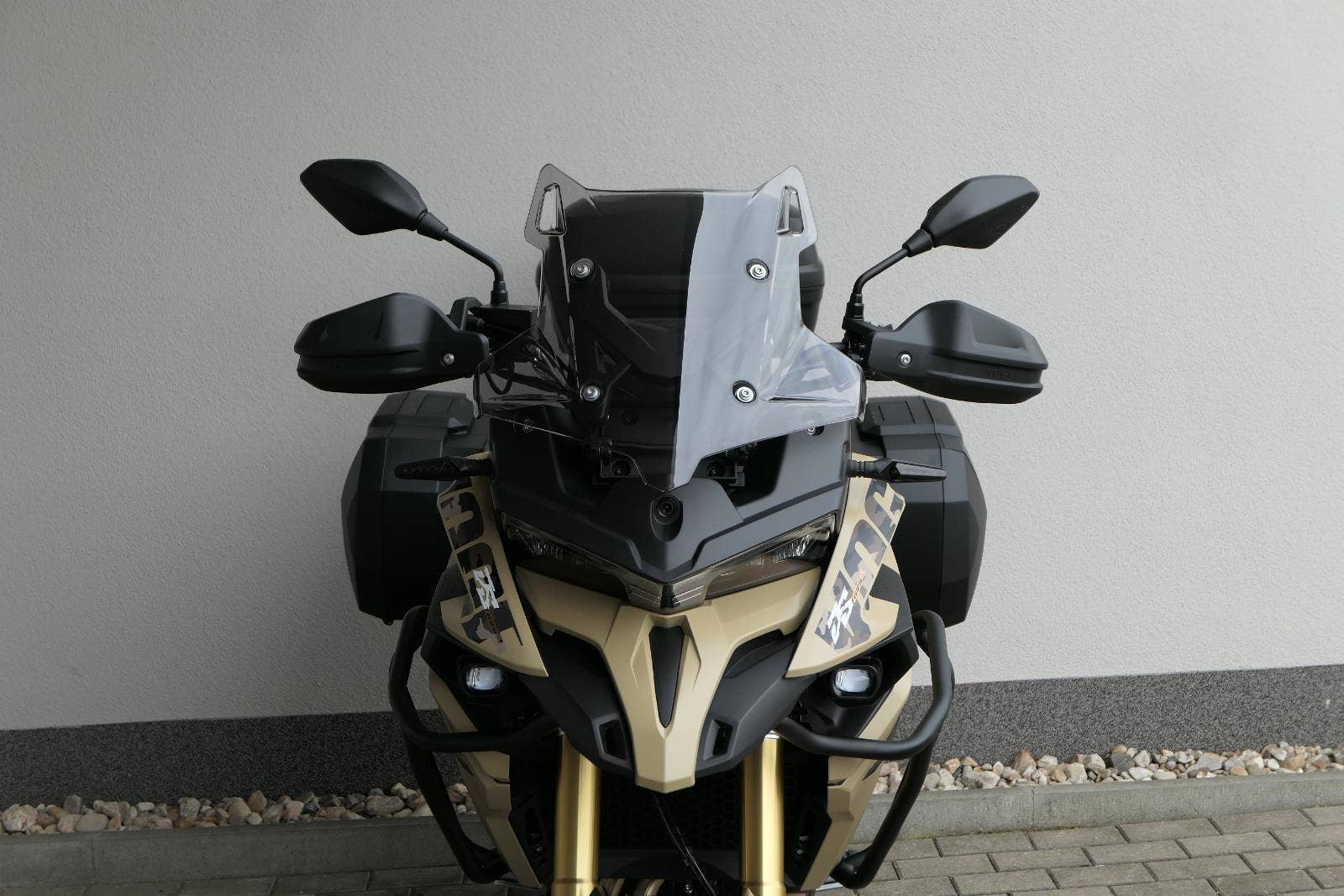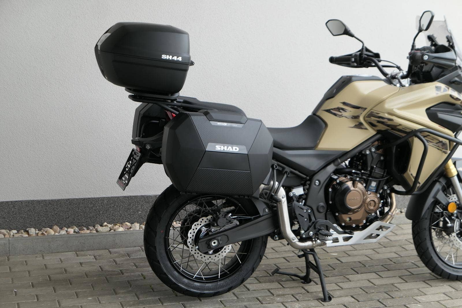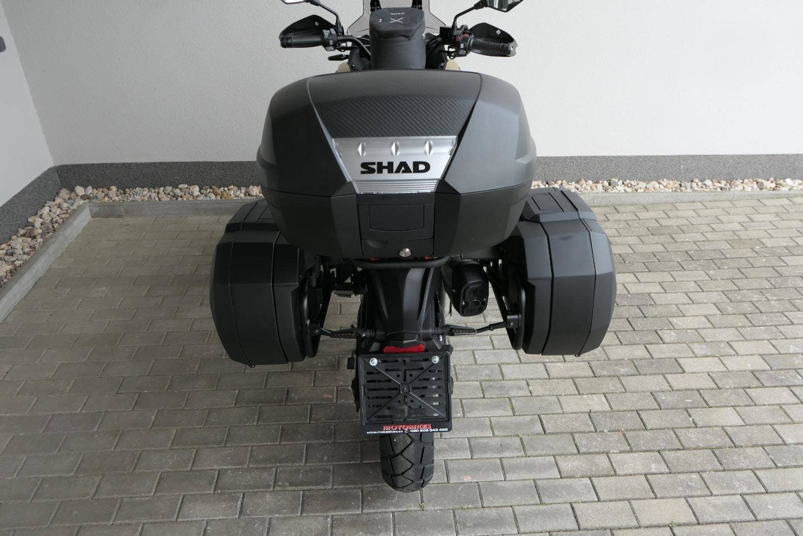 Těšit se můžeš taky na plexi, který si z místa řidiče bez nářadí nastavíš do dvou poloh. Oceníš i hliníkovej kryt motoru, LED světla včetně přídavnejch bodovek, boční i středovej stojan a hafo další výbavičky. Jo, a nově mám taky podsvícený ovladače na řídítkách, takže už žádný tápání ve tmě.