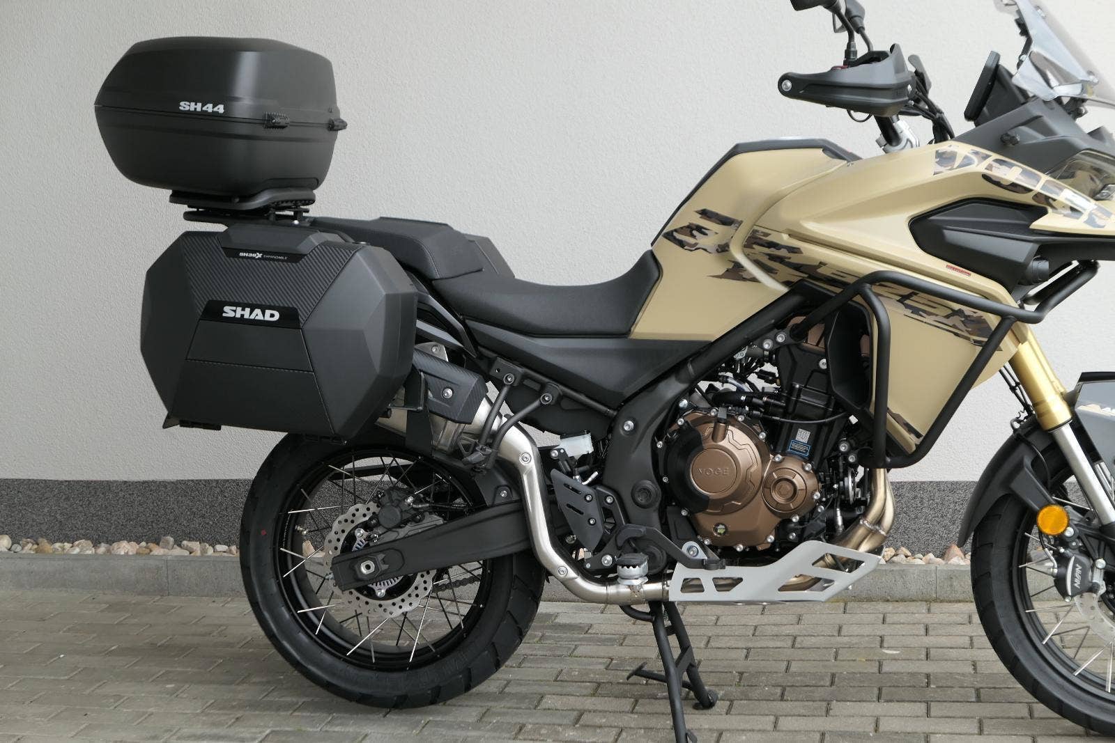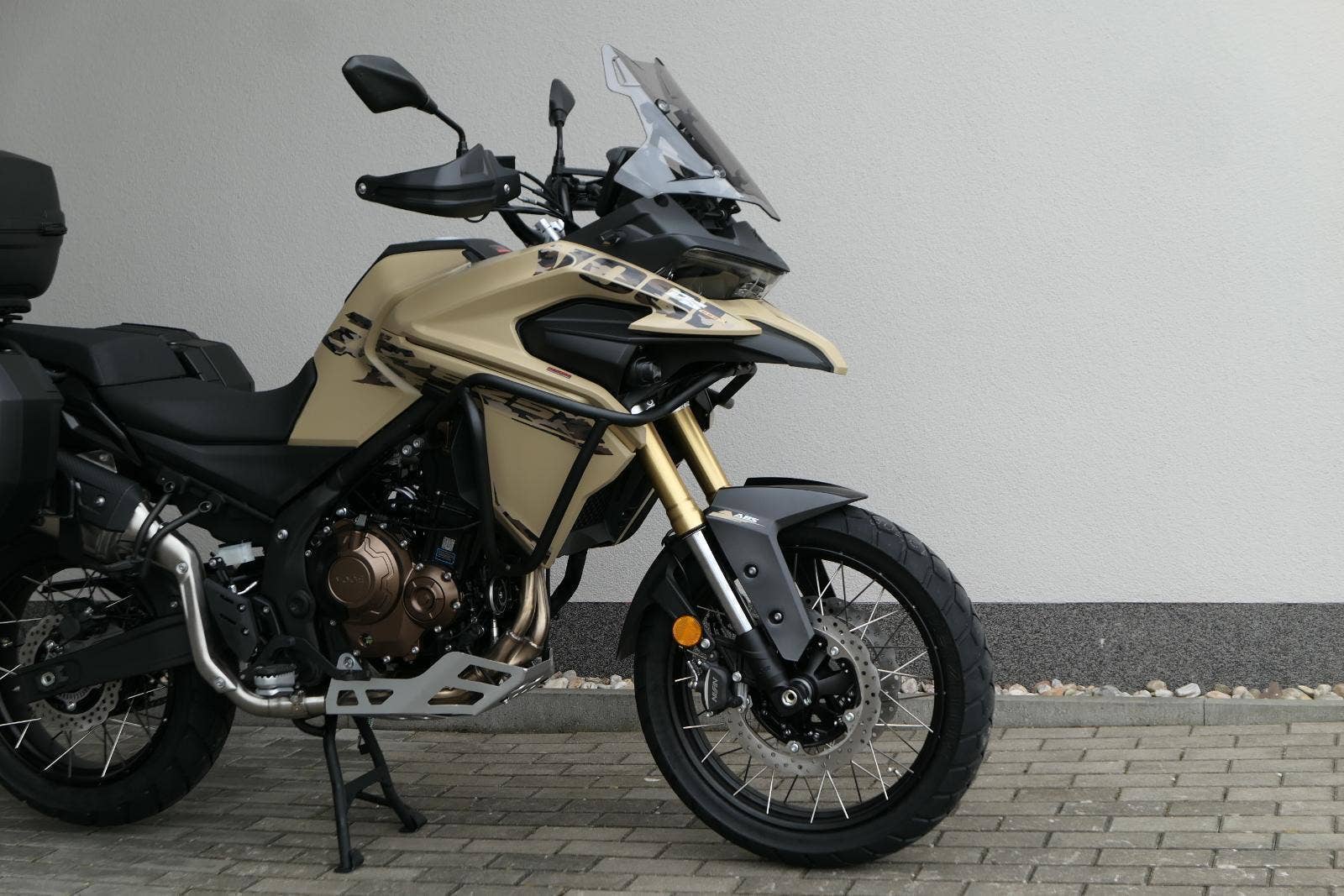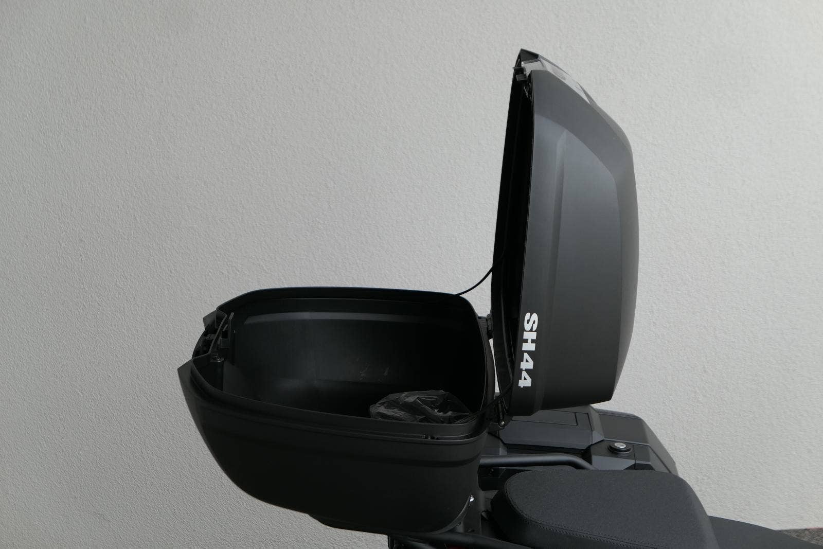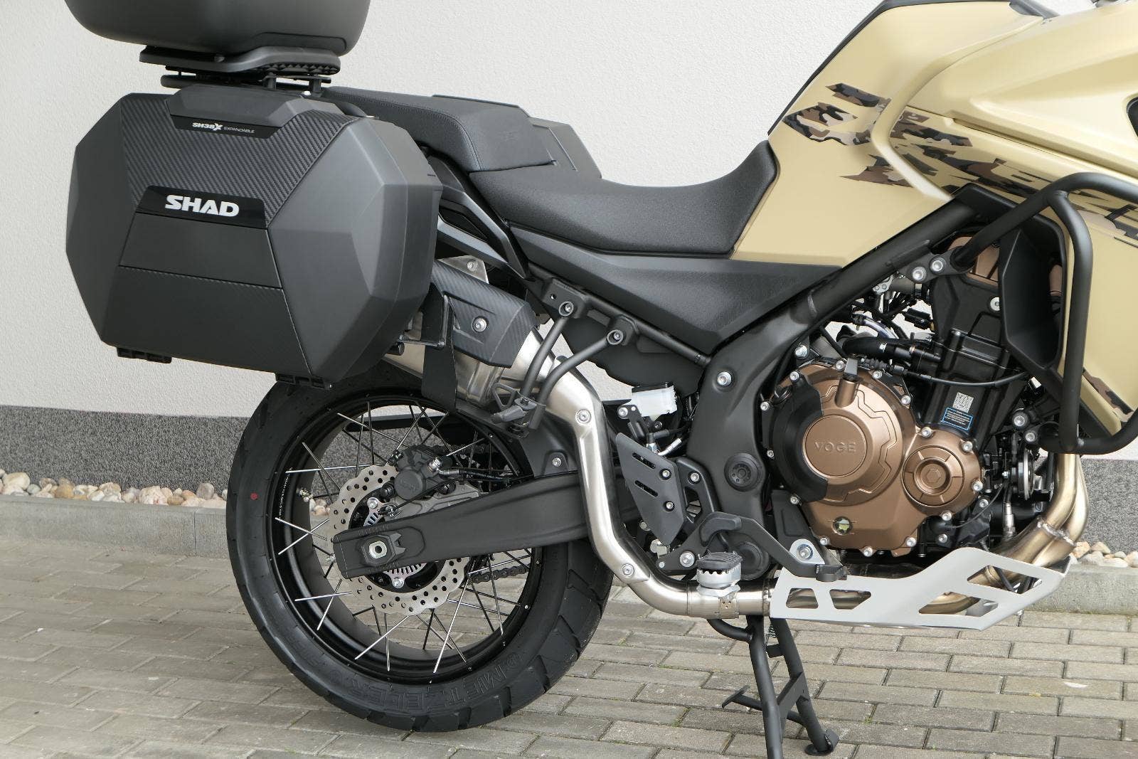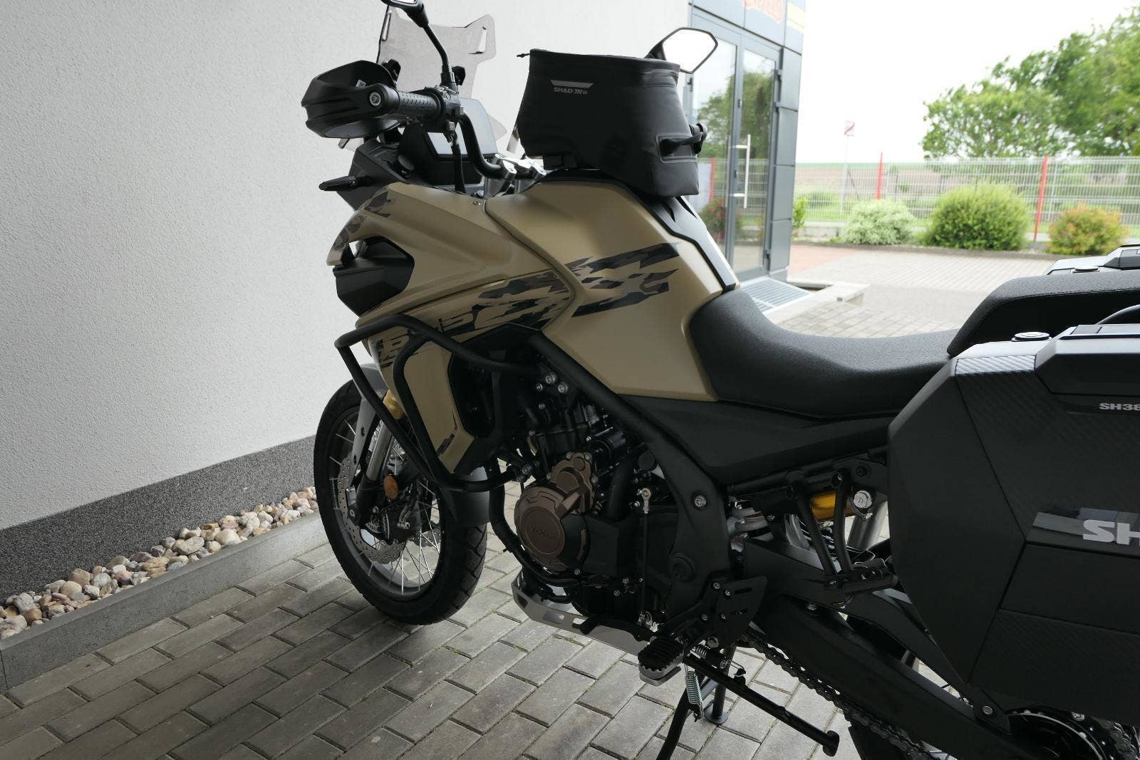 Těšit se můžeš taky na plexi, který si z místa řidiče bez nářadí nastavíš do dvou poloh. Oceníš i hliníkovej kryt motoru, LED světla včetně přídavnejch bodovek, boční i středovej stojan a hafo další výbavičky. Jo, a nově mám taky podsvícený ovladače na řídítkách, takže už žádný tápání ve tmě.
