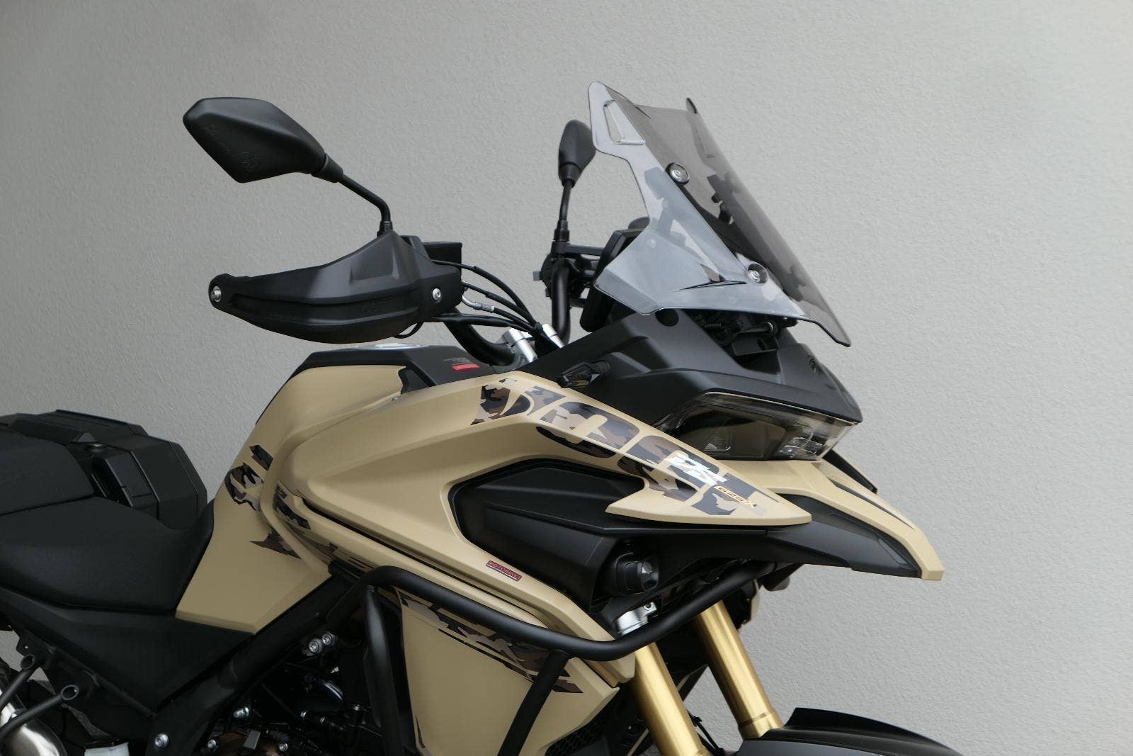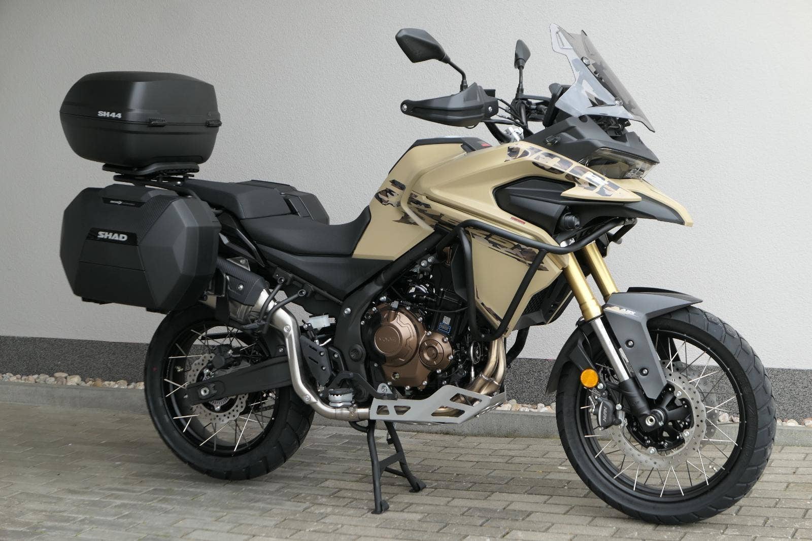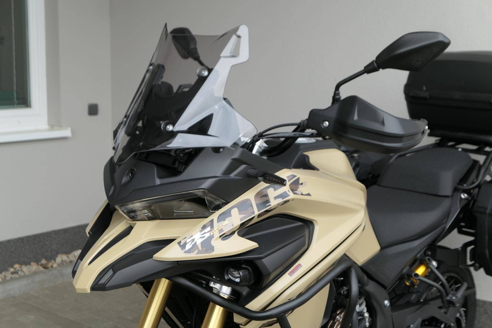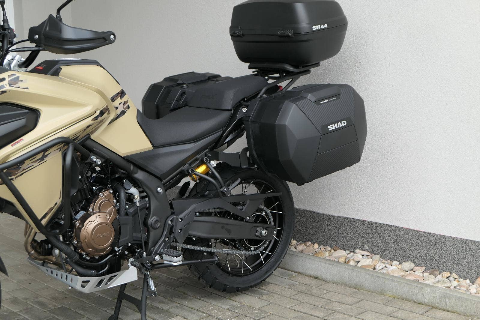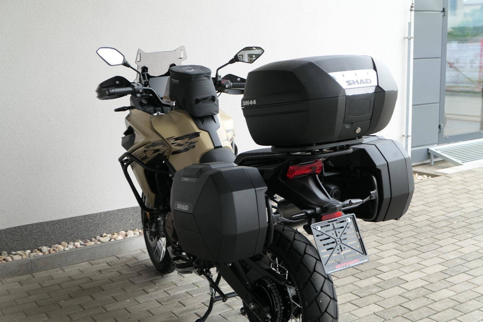 Těšit se můžeš taky na plexi, který si z místa řidiče bez nářadí nastavíš do dvou poloh. Oceníš i hliníkovej kryt motoru, LED světla včetně přídavnejch bodovek, boční i středovej stojan a hafo další výbavičky. Jo, a nově mám taky podsvícený ovladače na řídítkách, takže už žádný tápání ve tmě.