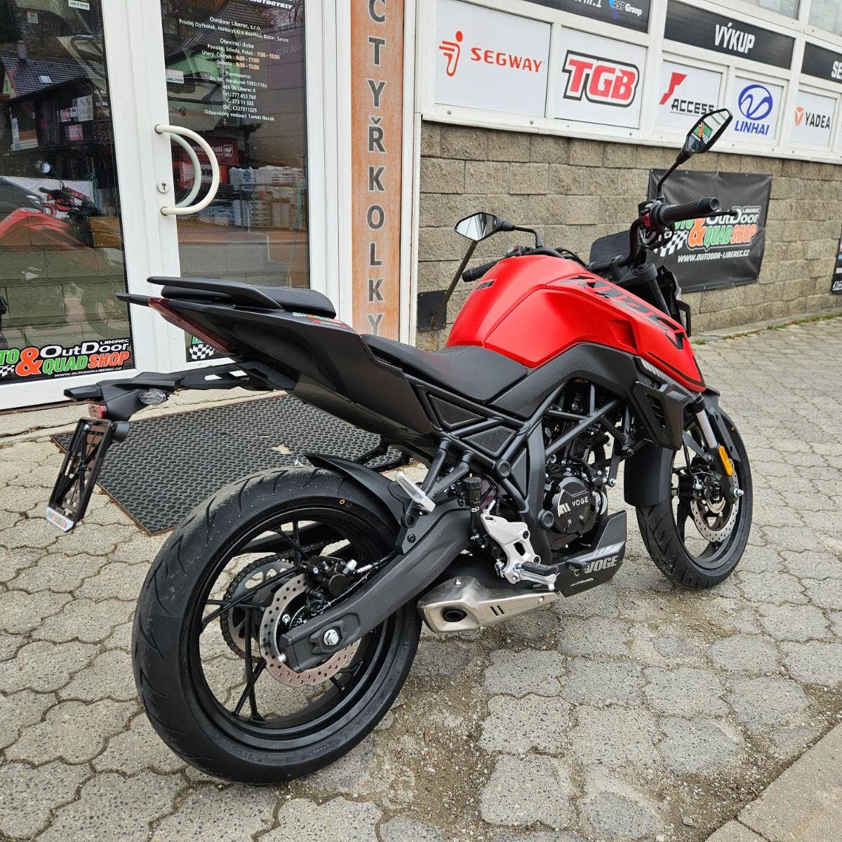 Outdoor Liberec = oficiální zastoupení čtyřkolek Can-am, Arctic Cat, Polaris, TGB, Access motor, Linhai, motocyklů Benelli a Voge, pitbiků YCF, skútrů SYM a elektroskútrů Yadea.