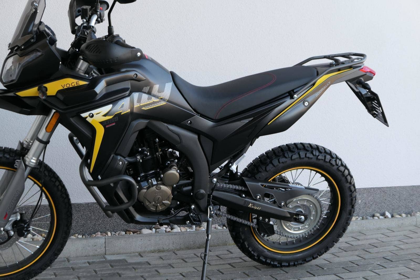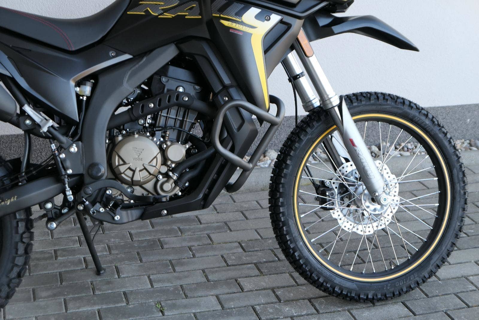Offroadový dovádění ti ulehčí i osazení kol – vpředu 21“ a vzadu 18“. Navíc si na to tata můžeš vypnout zadní ABS od Bosche. Tím výčet terénní výbavičky, kterou dostaneš už v základu, zdaleka nekončí. Vepředu najdeš upside-down vidlici a vzadu se o tvý pohodlí stará kyvka z lehký slitiny, u který si můžeš poštelovat tlumič. Samozřejmostí je taky ocelovej rám s dvojitou kolíbkou, vysoký plexi, padací rám nebo endurácký sedlo. No, samozřejmostí. Samozřejmostí je to u Voge. Obdobný mašiny vod konkurenčních značek jsou proti mně v základu docela holátka, a ještě za ně vyplázneš o pár desítek tisíc víc.