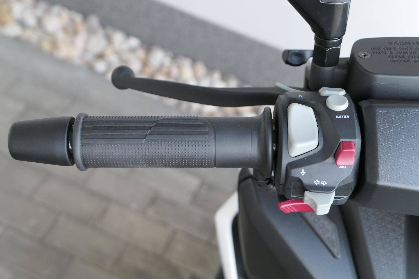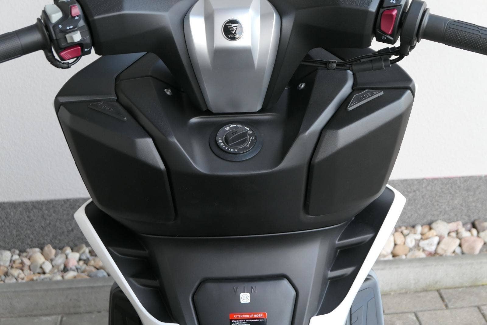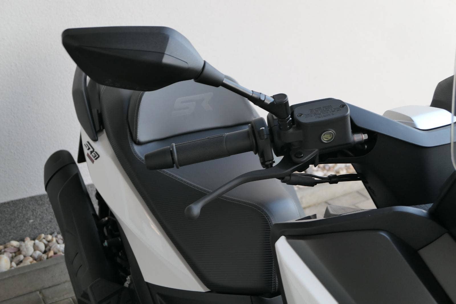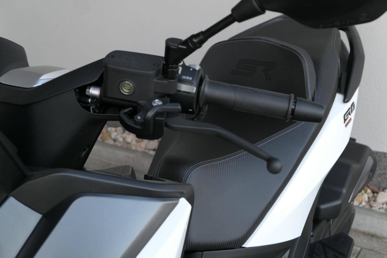 Z výbavy, kterou nabízím v základu, mají moji soupeři těžký sny. Věci jako bezklíčový startování a přístup k úložnejm prostorům berme jen jako takové oťukávání. Levý hák zasazuje nastavitelnej plexi štít, dvě přihrádky v palubní desce (jedna s USB zásuvkou) a ruční brzda.