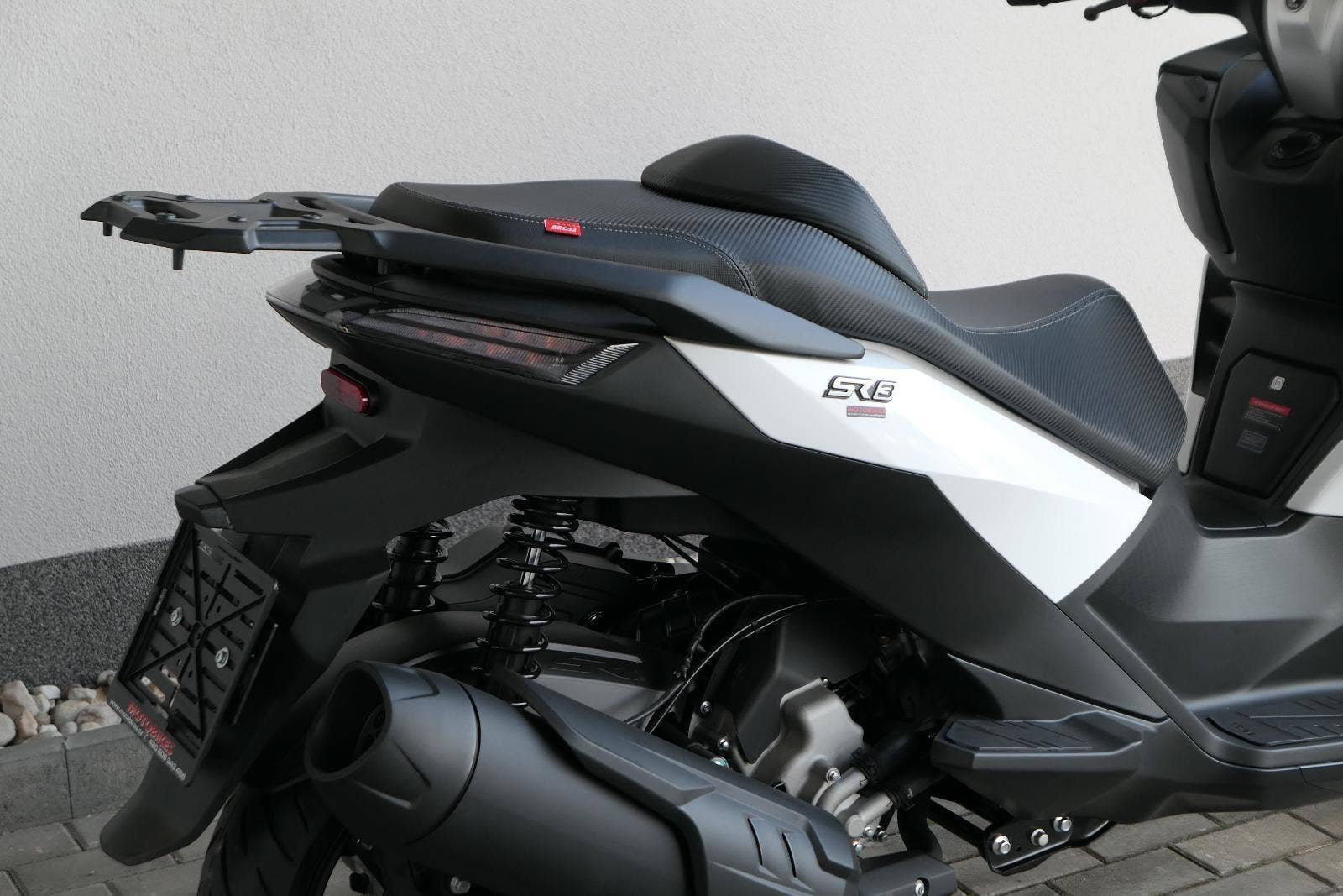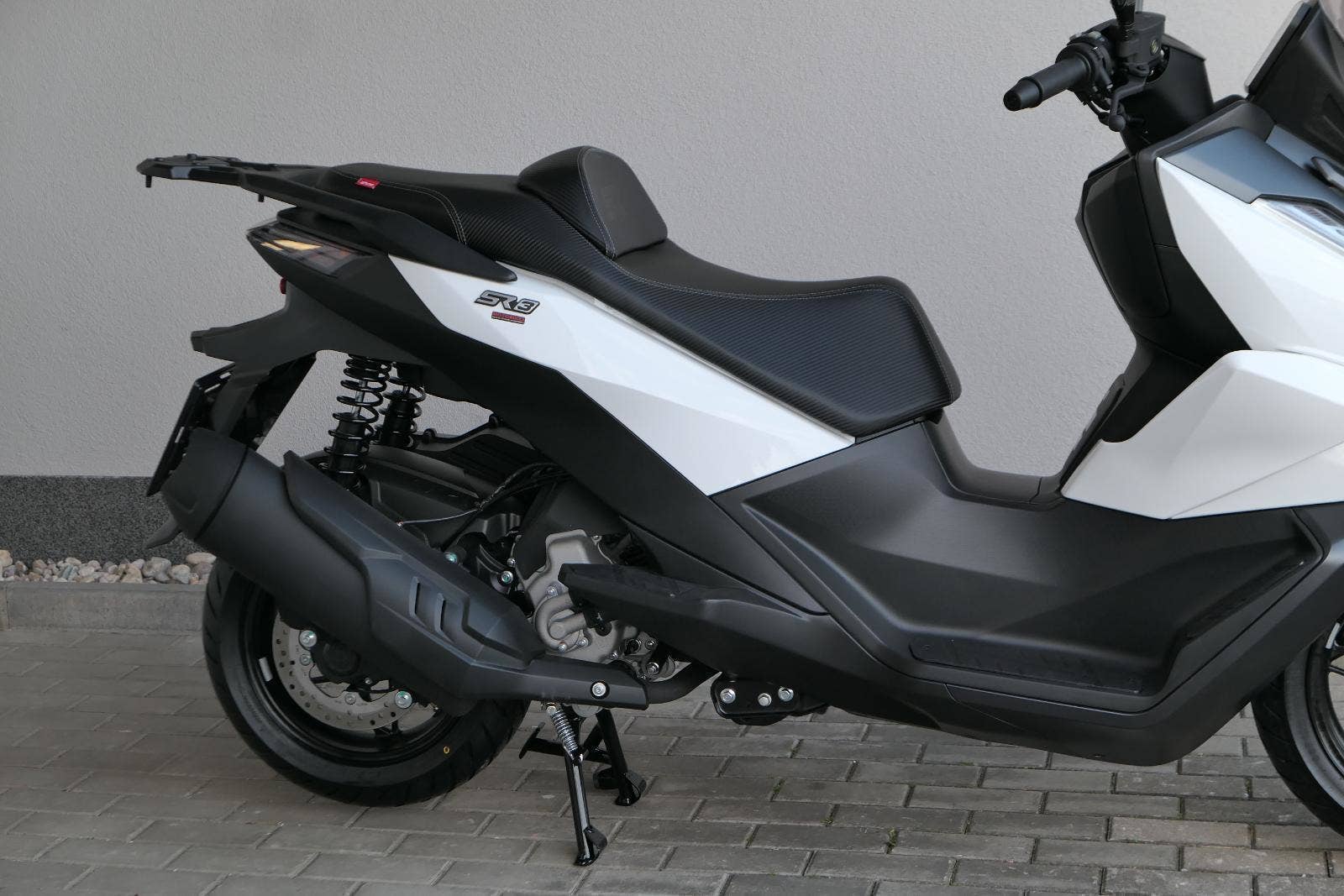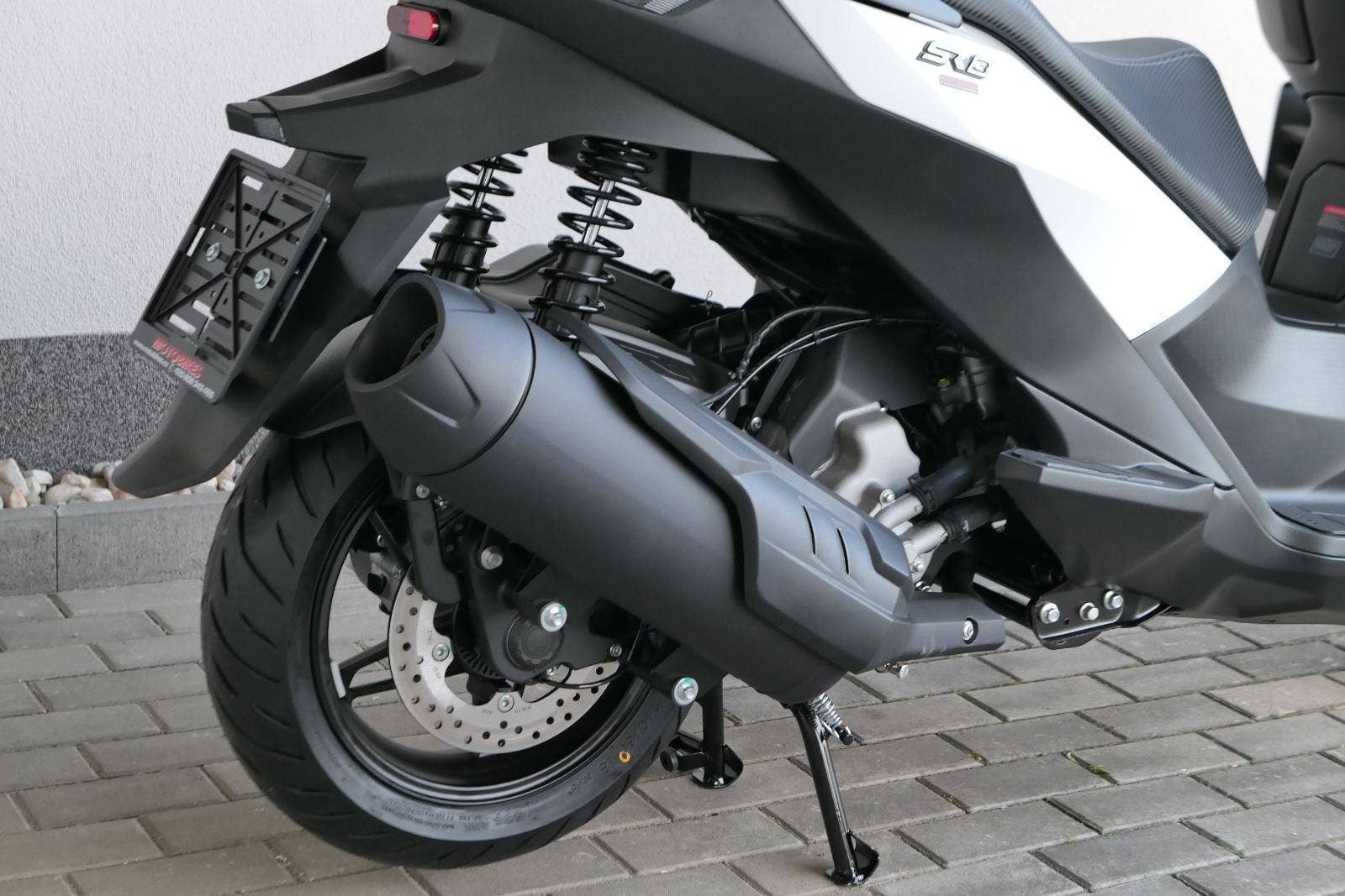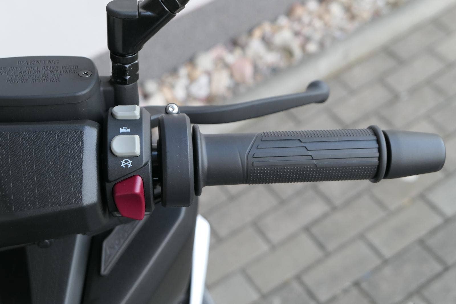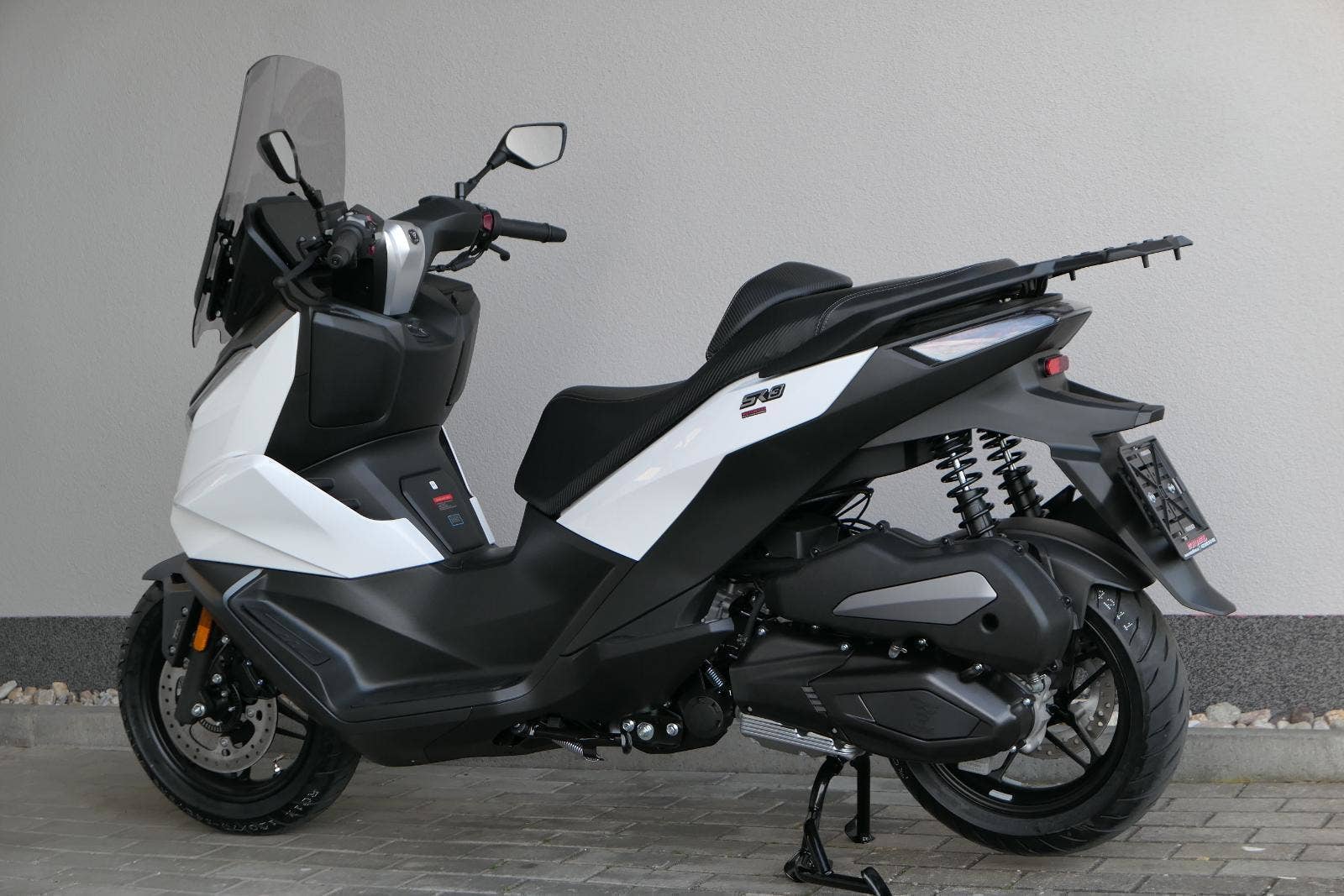 K tomu integrovaná palubní kamera s detektorem nárazu, kterej automaticky uloží záznam při nehodě. Elektrika je fajn, ale při brzdění spolíhám na starý dobrý železo, tedy dvoupístkový třmeny a kotouče. Ten vpředu má průměr 260 mm, zadní 240 mm. Na skútr slušný, co říkáš?