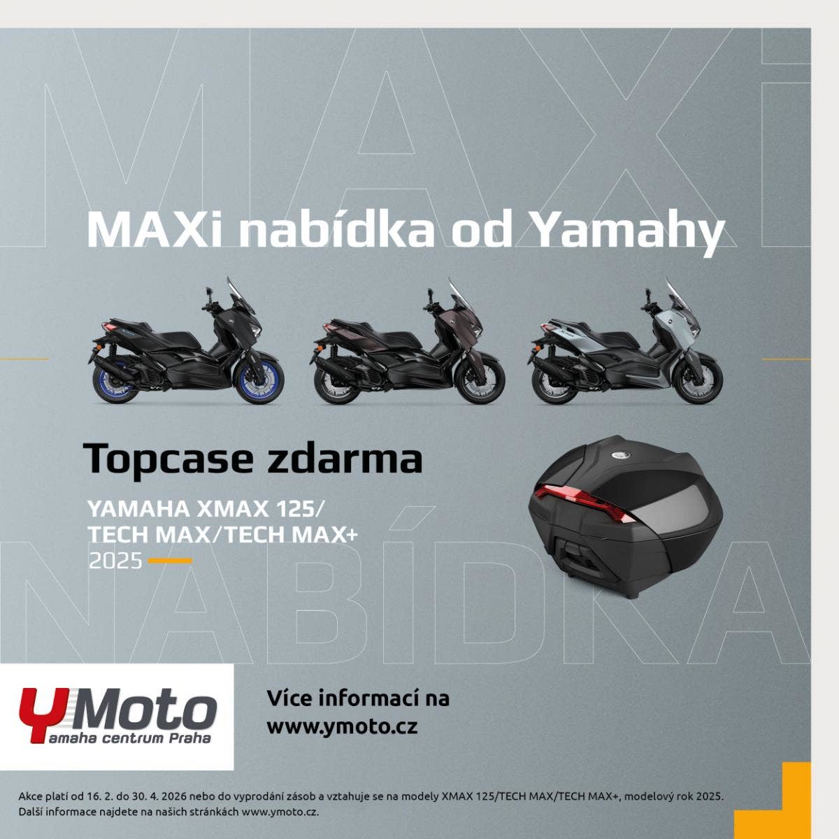 Modelový rok 2025: TOPCASE ZDARMA. Akce platí do 30. 4. 2026 nebo do vyprodání zásob. Více informací: www.ymoto.cz/topcase-zdarma/