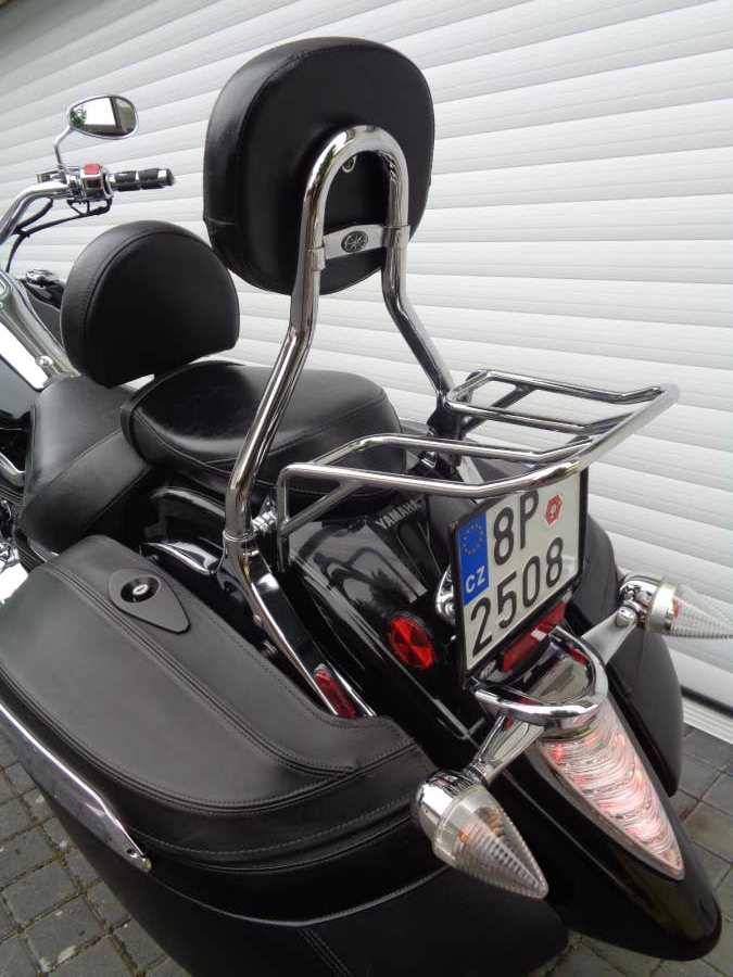 VÝBAVA: nový model v provedení CT – vše v chromu: světlo, vidle, páčky, přepínače, nádobky… atd. Padací rám, opěrka řidiče, opěrka spolujezdce – rychloupínací, laděné výfuky od Cobry + power commander, orig. kožené kufry – zamykatelné, rychloupínací - vše na pevné konstrukci. Dále chromový kryt řemene, zadní plotny spolujezdce, digit. ukazatel napětí baterie + 2x USB + dobíjecí kabel baterie, rukojeti od Kuryakynu … přidám malý tónovaný plexi štítek – rychloupínací, dále originální zadní nosič a značkovou truhlu na nosič - zamykatelnou.