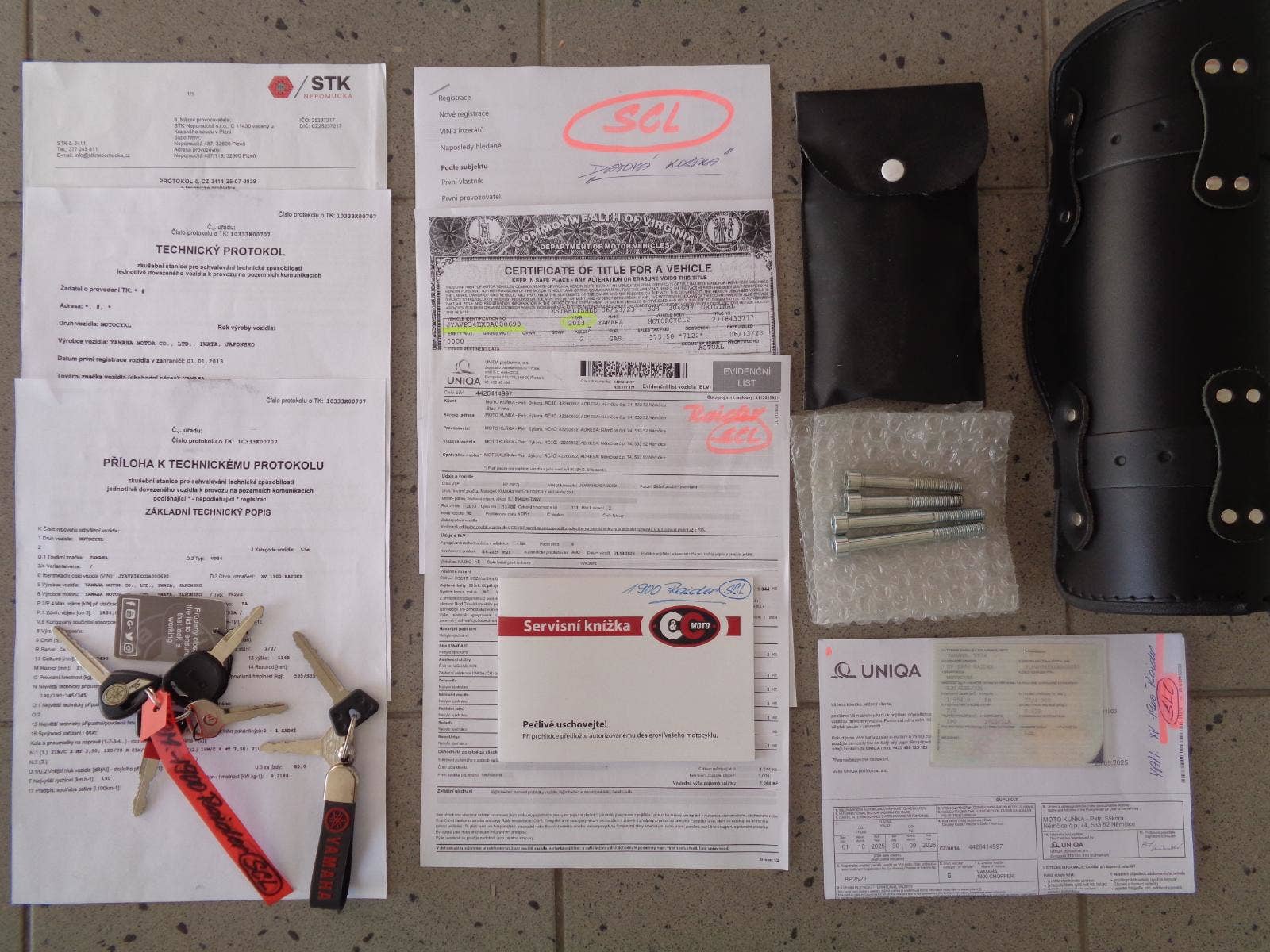 YAMAHA XV 1900 Raider -„SCL“ – limitovaná série: č. 261 z 500 vyrobených. r.v. a provoz: 2013, najeto: 8.376 mil = 13.400 km. Dovoz z USA - již na CZ značkách a dokladech v. č. zapsaných výjimek v evidenci vozidla. Kopie všech protokolů ze STK, US T.P. … SERVISNÍ KNÍŽKA, 2x klíče, nepoužité nářadí. T. K. do: 8/2029.