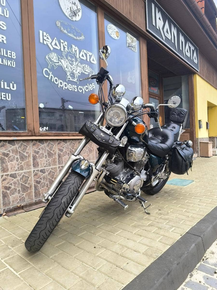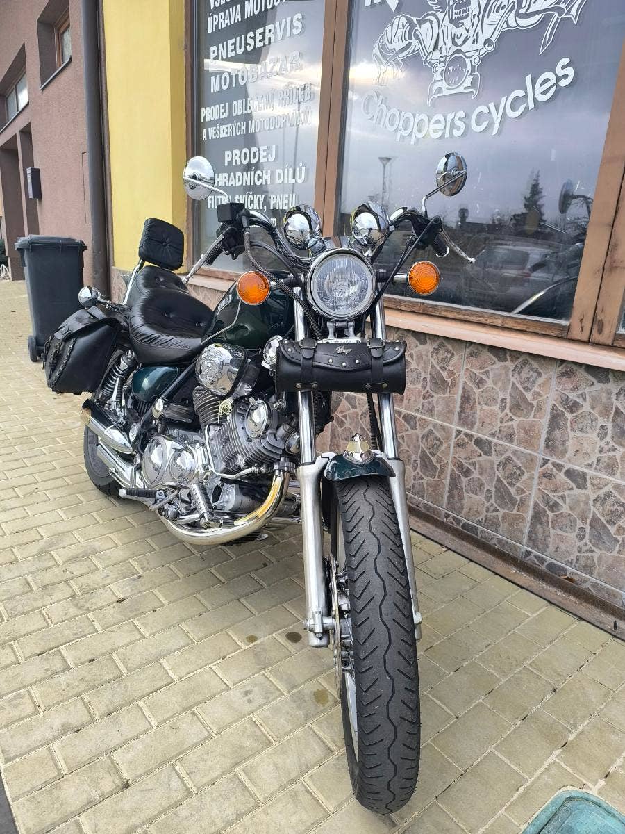 Prodám Yamaha XV 1100 Virago r.v. 1994 najeto 47800 km a výkon 45 kW. Virago je vhodný chopper pro začátečníky, lehký dobře ovladatelný a jednoduchý chopper. Motorka je zachovalá (chromy na motoru O. K.) Virago je po kompletním servisu, kontrole provozních náplní, vyčištěné seřízené karburátory, seřízené ventily, nové zap. svíčky, nová baterka, nový vzd. filtr, nová STK na 4 roky. Vše připraveno na novou sezonu bez investic. Doplňky- přídavné stupačky, opěrka + nosič, podpěry + brašny. Pro více info tel. před návštěvou volat!!! Po dohodě motorku i dovezeme. Na Viraga se specializujeme máte možnost si přijít vybrat:) zajistíme vám srrvis, díly, doplňky. Jsme již od roku 1999 IRON MOTO