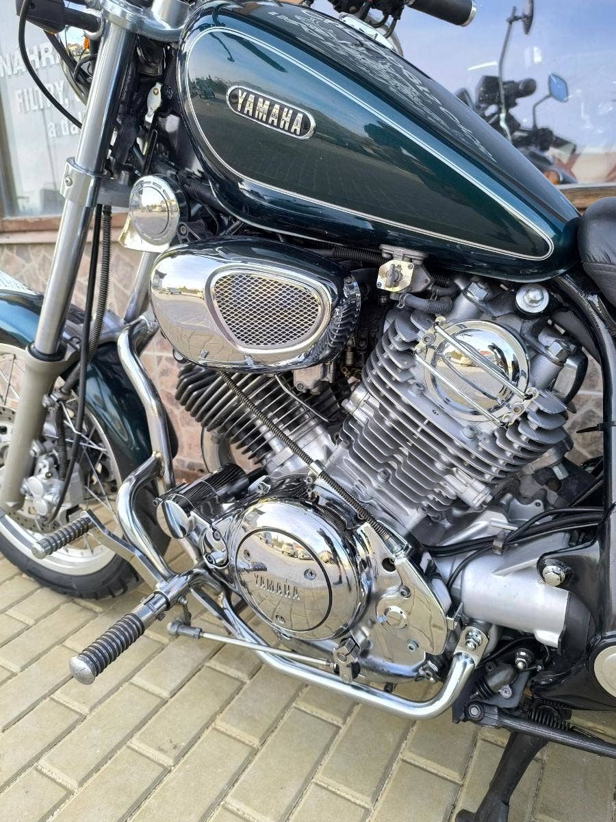 Prodám Yamaha XV 750 Virago r.v. 1995 najeto 42900 km a výkon 40 kW. Virago je pěkné zachovalé se spoustou doplňků a ve velmi dobrém technickém stavu. Virago je vhodný chopper pro začátečníky lehký, dobře ovladatelný a jednodnoduchý. Motorka je po kompletní kontrole všech náplní, vyčištěné seřízené karburátory, seřízené ventily, nové svíčky, vzd. filtr, zánovní sada pneu, nová STK na 4 roky. Vše připraveno bez nutných investic. Doplňky- padací rám, přepákování řidičových stupaček, opěrka + nosič, podpěry + brašny, výfuky Silver Tail s homologací