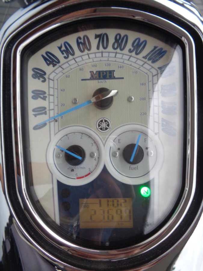 YAMAHA XV 1900 Midnight Star. Model a rok výroby: 2013, najeto: 14.810 mil = 23.700 km. Dovoz z USA – již na CZ značkách a dokladech v. č. zapsaných výjimek v evidenci vozidla. Kopie protokolů ze STK, US T.P., výjimky z ministerstva dopravy … atd. Servisní knížka, 2x klíče, nepoužité nářadí. T. K. do: 7/2029.