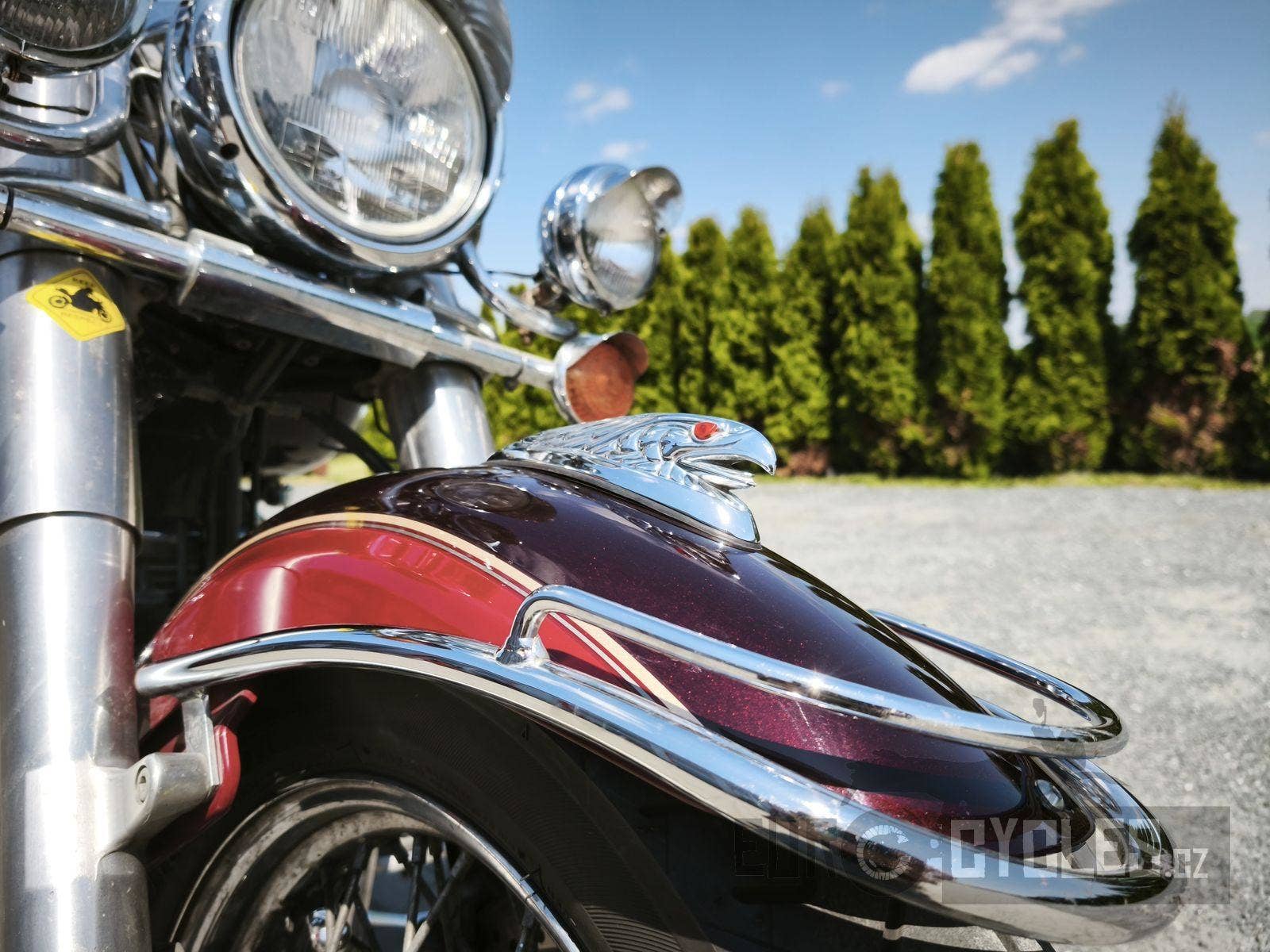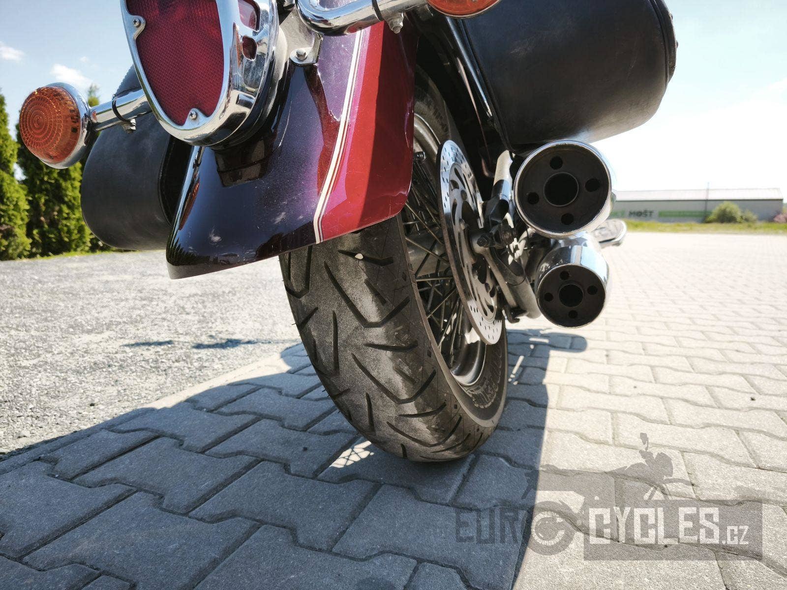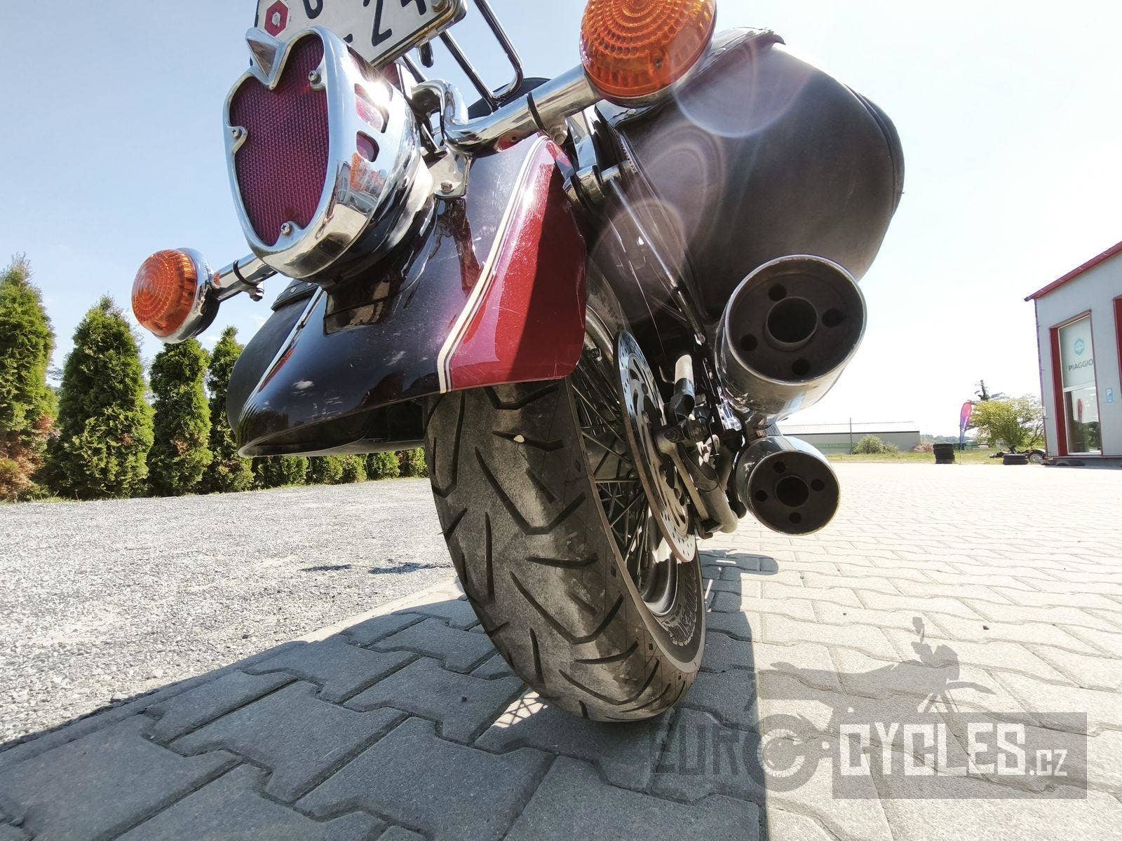 Původ ČR, pouze tři uživatelé. Kompletní CZ dokumentace, manuál, servisní knížka. Zachovalý stav, lak i chromy 100%. Přídavná světla, kožené brašny, nosič, rámeček blatníku. Nové pneumatiky, po výměně oleje a filtru. K motocyklu nenamontované příslušenství: opěrka, rolka, zadní kožený válec.