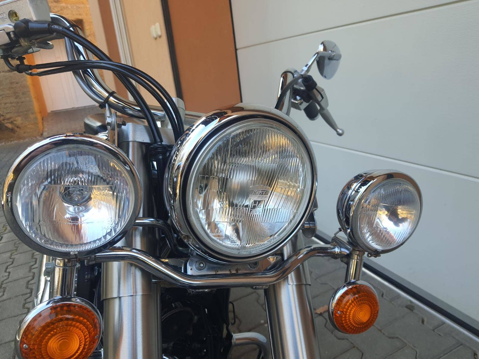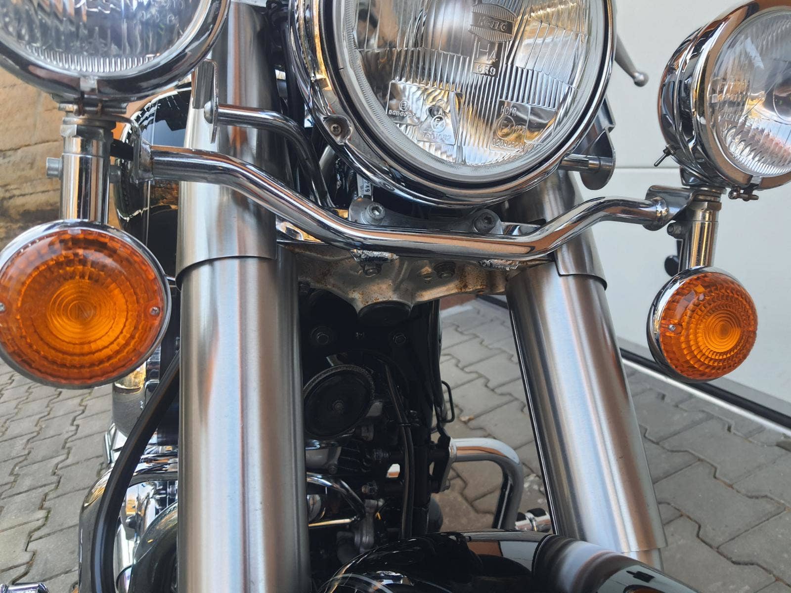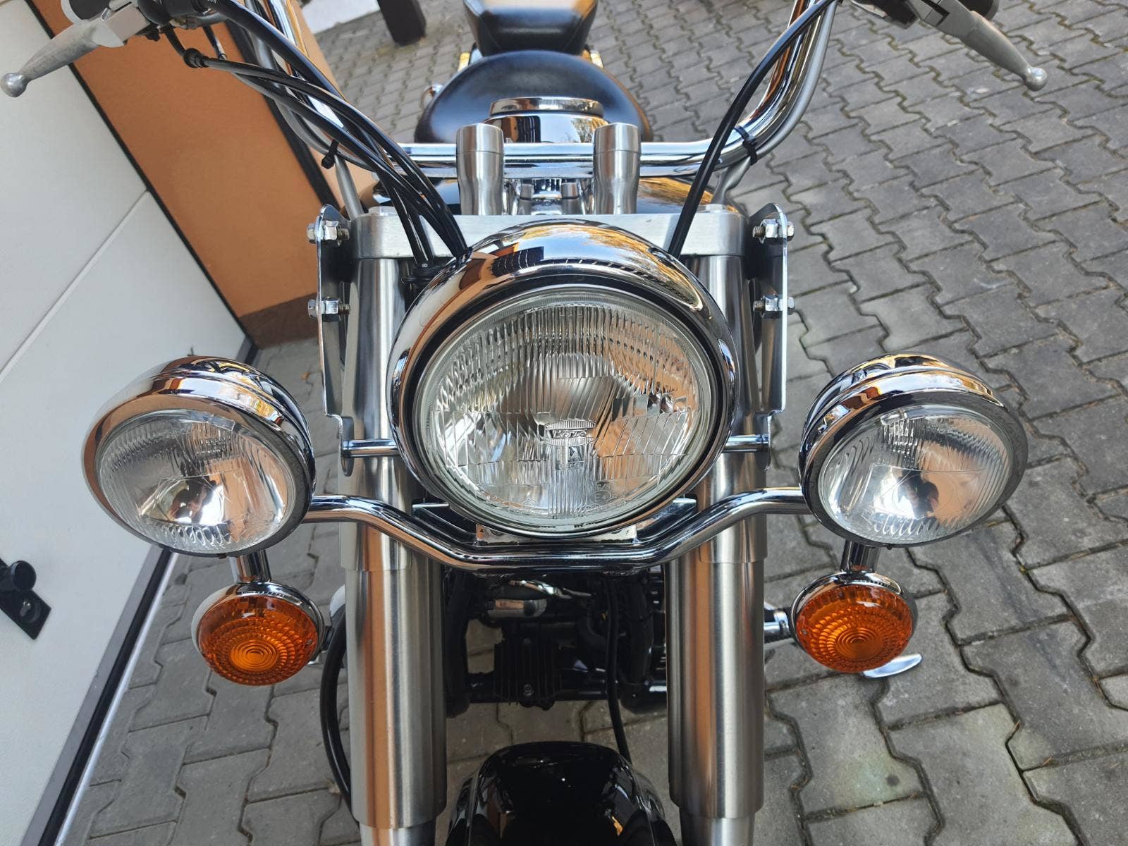 Motocykl v perfektním stavu, nehavarovaný, dovezený z Německa. 1. majitel. Najeto pouze 4 192 MPH. Chromy a hliníkové části v zachovalém stavu. Zánovní sada pneu. Výbava motocyklu: Padací rámy, přídavná světla včetně držáků, držák plexi štítu, doplňková páka zadní brzdy, + doplňková řadící páčka. Možnost splátkového prodeje, již při složení 10% akontace vyřízení úvěru do 30 minut!