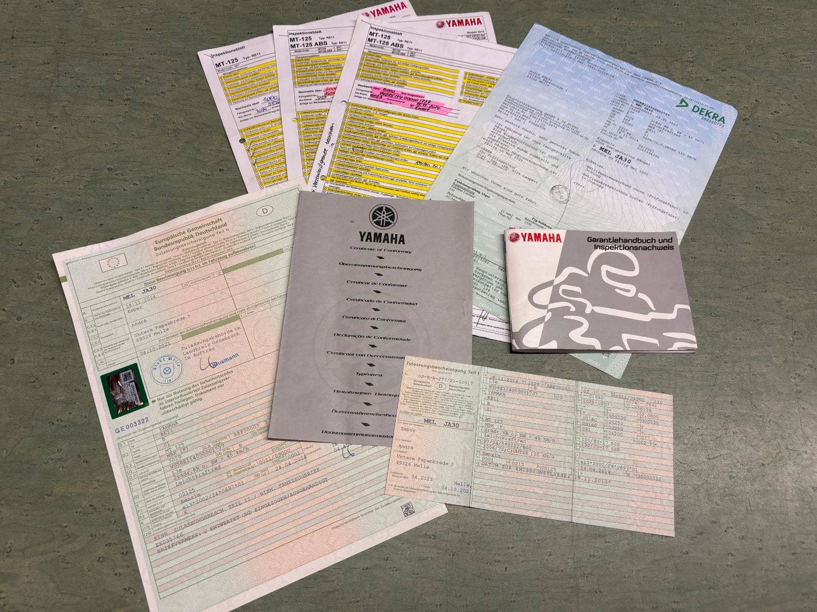 K Yamaze je COC List, TP, záznamy ze servisu, protokol z Německé STK, 2 x klíč