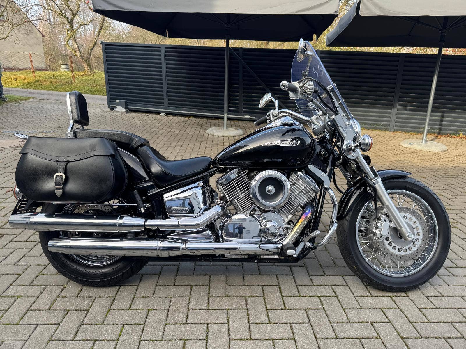 Yamaha XVS 1100 Dragstar, 1. registrace 1999, najeto pouze 8.000km!! Výkon 42 kW. Plexi štít, kožené boční brašny, opěrka spolujezdce, zadní nosič, kožená rolna na vidlicích, padací rám. Na motorce kompletně vyčištěny karburátory v ultrazvuku. Krásný Dragstar s velmi malým nájezdem bez dalších investic. DOHODA MOŽNÁ.