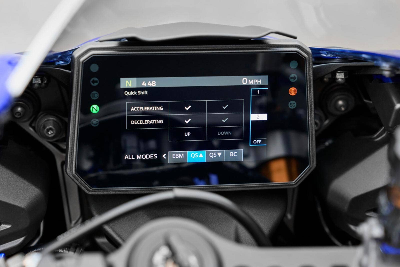 ✓ Yamaha Ride Control (YRC) – 3 tovární jízdní režimy (Sport, Street, Rain) + 2 vlastní mapy přes MyRide