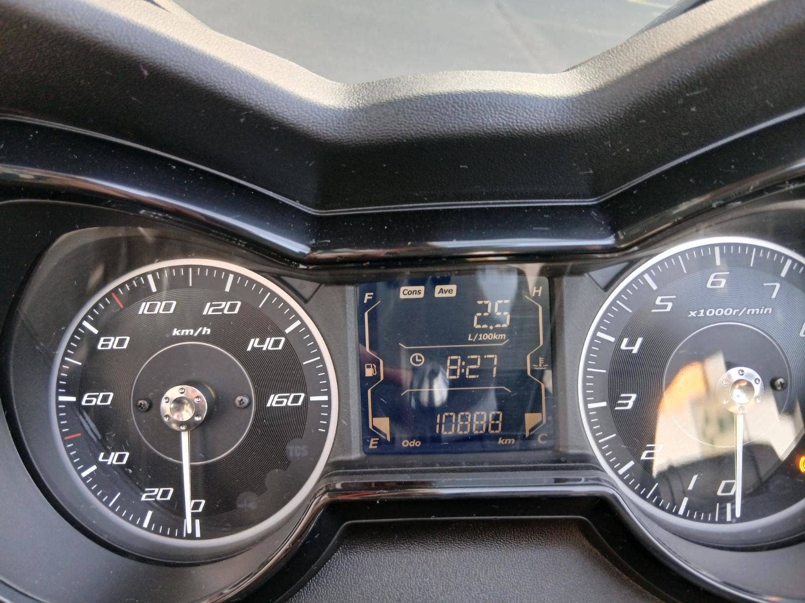 Výbava skútru: LED světla, bezklíčové startování, kontrola trakce, ABS, prostor pod sedlem na dvě přilby, zásuvka.