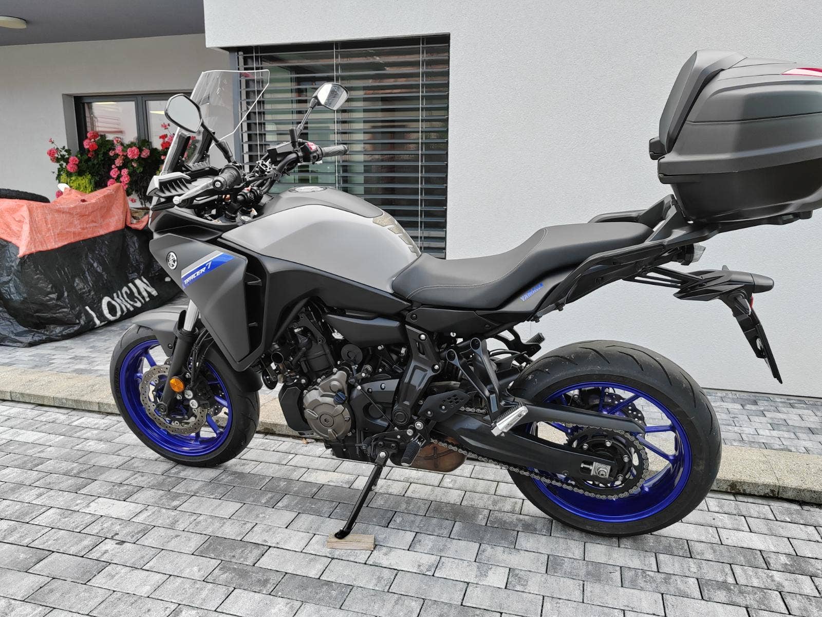 25.5.2021,3xklíče, najeto 37800 km, servisní knížka, servis 35800 km, dovoz do ČR 20.8.2025, pneu 95%, řetězová sada 98%, výbava originál kufr, ABS