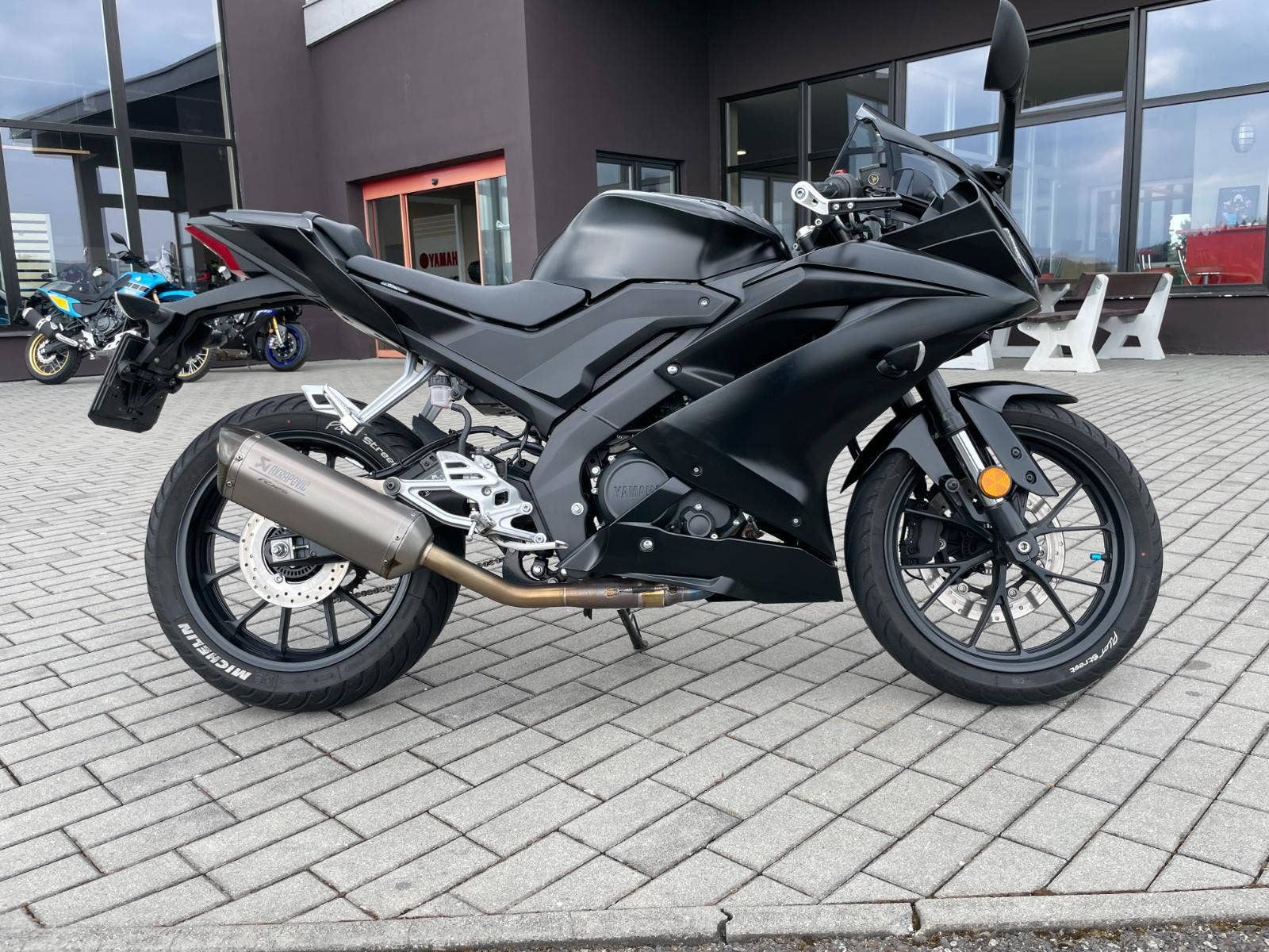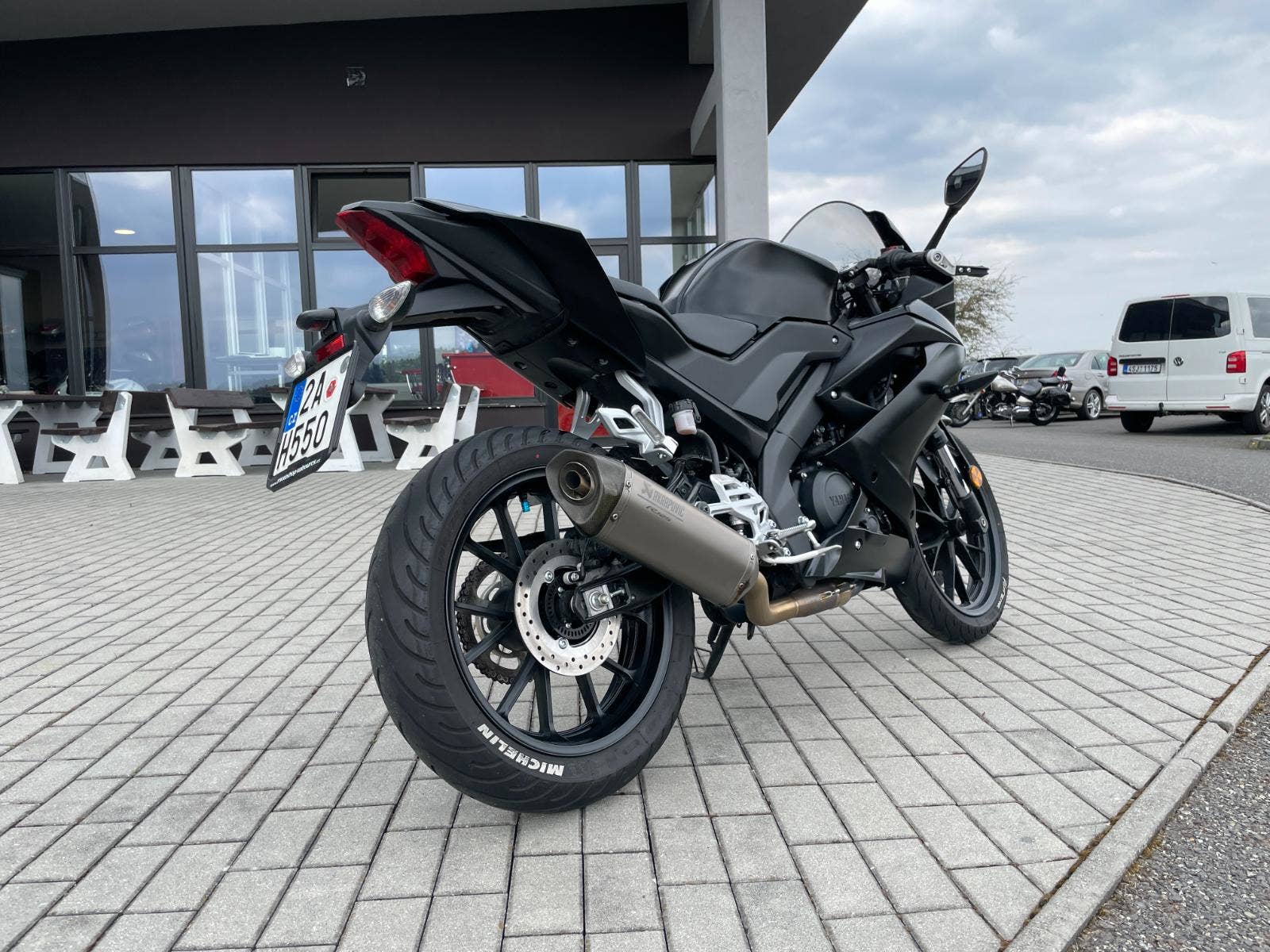 Homologovaný výfukový systém Akrapovič v hodnotě 27 077 Kč. Originální výfuk k motocyklu.