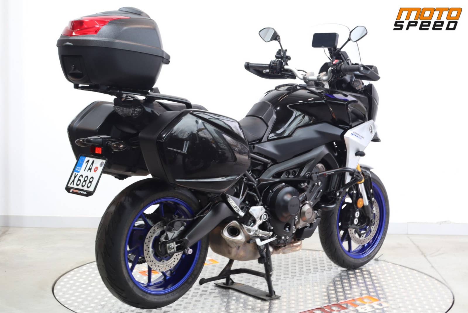 Výbava: ABS, TFT display, zásuvka 12 V, 3 jízdní režimy, tempomat, kontrola trakce, rychlořazení nahoru, vyhřívané rukojetě, 3x originál kufry YAMAHA, padací rám SW-MOTECH, nastavitelné plexi, blastery, hl. stojan, CARPURIDE.