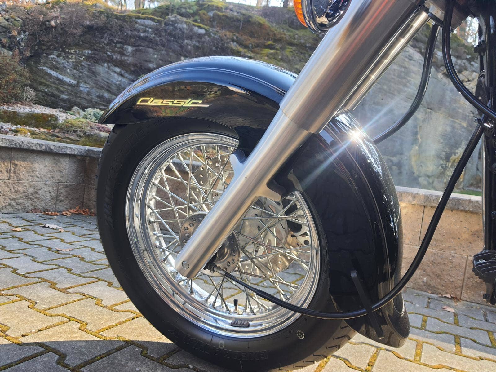 Motocykl v perfektním stavu, nehavarovaný, dovezený z Německa. 1. majitel. Najeto pouze 4 192 MPH. Chromy a hliníkové části v zachovalém stavu. Zánovní sada pneu. Výbava motocyklu: Padací rámy, přídavná světla včetně držáků, držák plexi štítu, doplňková páka zadní brzdy, + doplňková řadící páčka. Možnost splátkového prodeje, již při složení 10% akontace vyřízení úvěru do 30 minut!