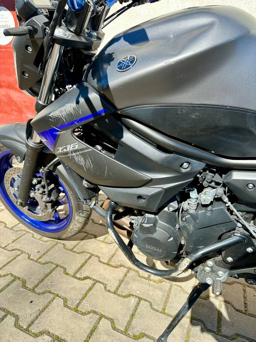 Yamaha xj6, 2013, najeto cca 41 tis km, havarovaný viz foto - odřený levý bok, nádrž, plast, zrcátko, motor běží, motocykl pojízdný, možnost úvěru od Essoxu nebo Cofidis