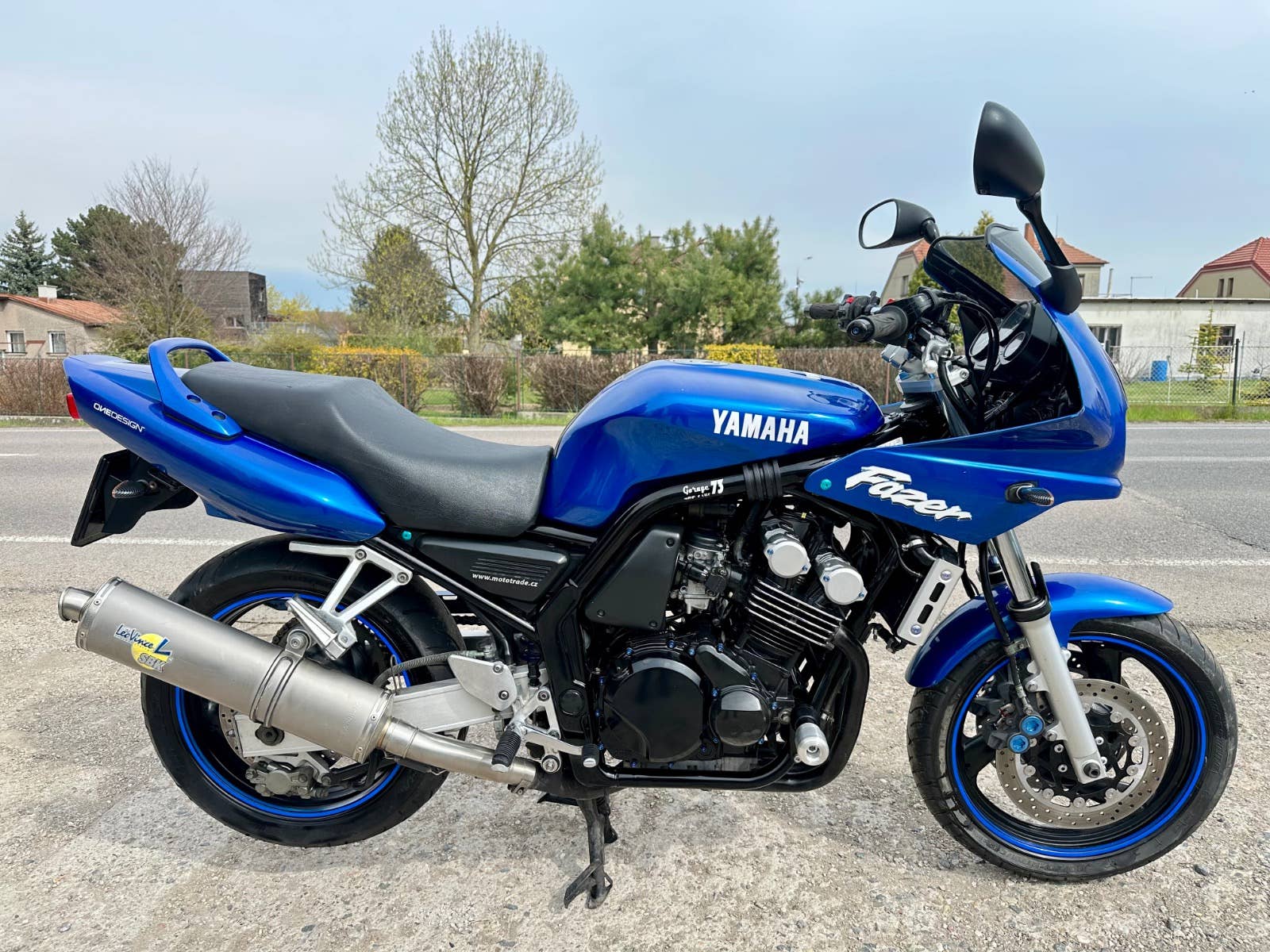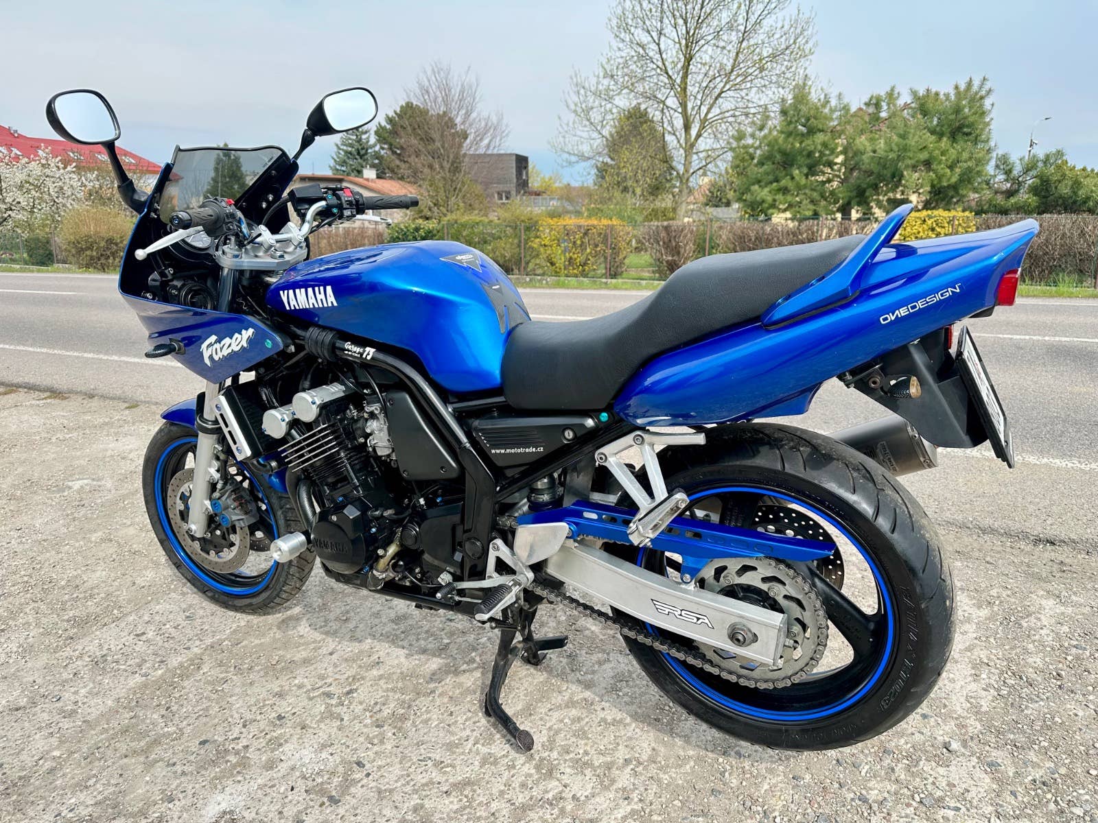 Yamaha fzs 600 fazer, 2001, cz TP, najeto 37 tis km, původní majitel vyměnil za lehčí motocykl vzhledem k vyššímu věku, Laďák Leo Vince, centrální stojan, padáky, k motocyklu i kufr s nosičem, podvozek Gubelliny, pneumatiky jsou vyfocené, vzhledem ke svému stáří tak je motocykl zachovalý, nová řetězová sada, možnost úvěru od Essoxu nebo Cofidis