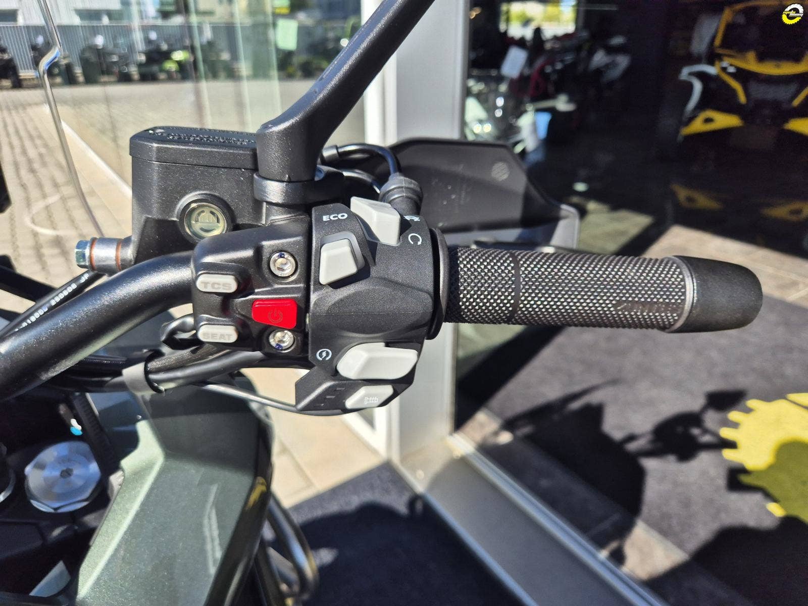 Mezi režimy Eco a Sport můžete snadno přepínat pomocí spínače na řídítkách. V režimu Eco se systém automaticky přepne do režimu Sport, když otáčky motoru dosáhnou 7 000 ot./min., čímž poskytuje okamžitý výkon pro předjížděcí manévry.