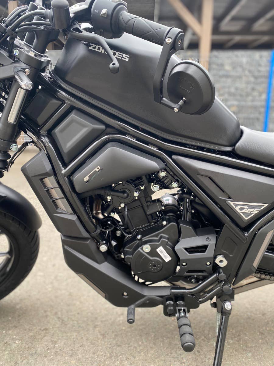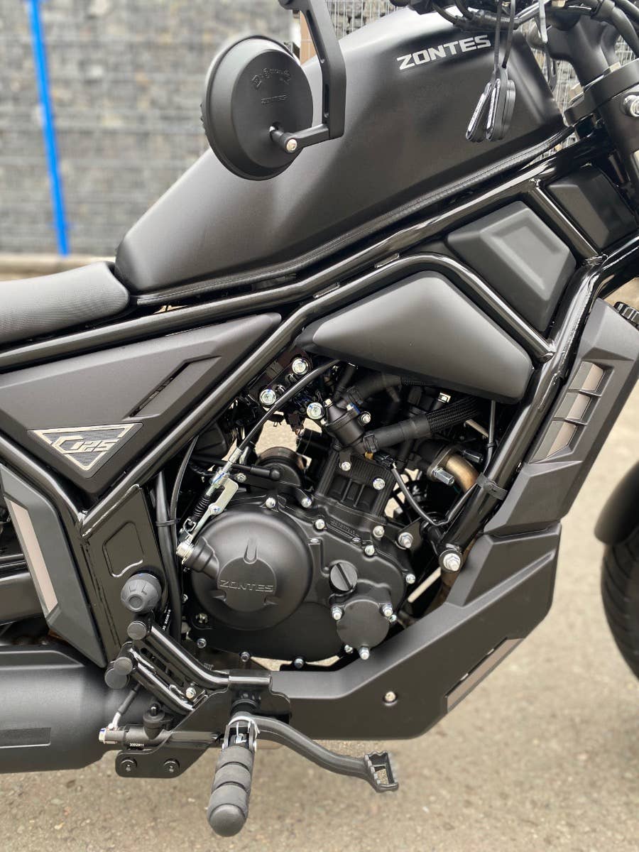 Model Zontes 125 Custom charakteristický rovnými a hranatými liniemi, nakloněnou nádrží a sedlem typickým pro zakázkové modely, ztělesňuje éru, kdy silnice byly neodolatelným voláním po dobrodružství. Motor nové konstrukce poskytuje maximální výkon 14,6 hp. Hliníkový válec rychleji odvádí teplo, zlepšuje výkon a je klíčovým faktorem pro prodloužení životnosti motoru. Věnujte pozornost detailům, buďte uvolnění a pohodlní, a ukažte svůj svobodný postoj. Měkký podsedák, plný sportovního ducha, nabízí snadnou jízdu na silnici a posouvá zážitek z jízdy na novou úroveň – skutečně pocítíte vítr svobody. Výška sedadla 700 mm vám umožňuje nastavit si vlastní pohodlný jízdní režim, který neomezuje vaše pohybové možnosti a poskytuje maximální pocit bezpečí při objevování nových cest. Integrovaný velkoplošný vodou chlazený radiátor zajišťuje vysokou účinnost odvodu tepla. V horkém počasí vám poskytne optimální pohodlí a umožní snadnou jízdu bez ohledu na teplotu, vše s doprovodem příjemného vánku.