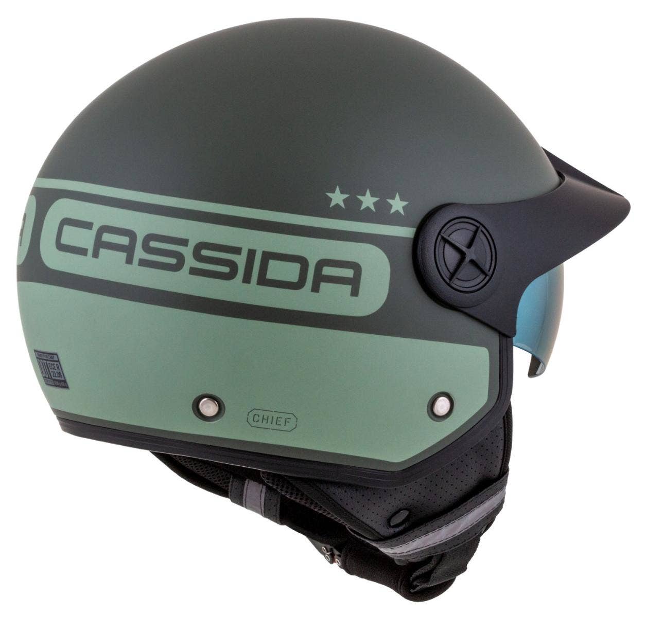 Plně odnímatelná výstelka s vícemateriálovým uspořádáním. Vnitřní plochy v oblasti pod výstelkou lícnic obsahují vyhloubnení vhodné pro osazení sluchátek komunikátorů. Zapínání bezpečnostního řemínku pomocí mikrometrické přezky. Textilní vak na přilbu. Prémiový obal CASSIDA HELMETS v podobě dvoudílné krabice s madlem. Hmotnost přilby 1200g ±50g.